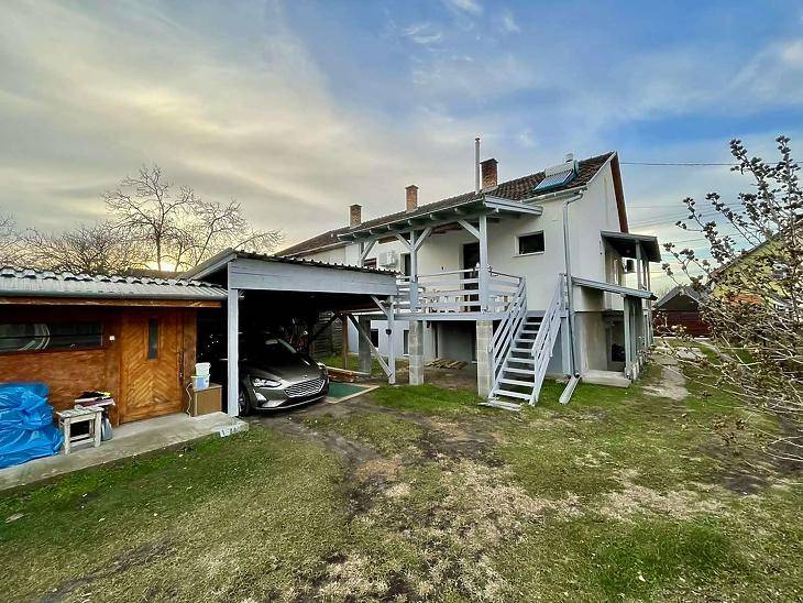 Eladásra kínálunk Dunakeszi alsótabán részén, 2 szintes, szigetelt, 160nm-es jó állapotú, jól felszerelt családiházat. Az alsó szinten (fél szuterén) kialakítható, egy teljes lakrész, nappali, 2 hálószoba és 1 fürdőszoba. Ez a szint, műszakilag jó állapotú, villany vezetékezés megtörtént, a falak glettelve vanna, festés, szaniterek és a burkolatok hiányoznak.A fenti szinten, 2 hálószoba, nappali, fürdőszoba, és étkezővel egybenyitott konyha melyen keresztül egy 12nm-es terasz közelíthető meg. Ezen a szinten 2022-ben teljeskörű felújítást végeztek.A fűtésről kombi cirkó, vagy vegyes tüzelésű kazán gondoskodik, de hűtő-fűtő klíma is felszerelésre került. A konyhabútor az ár részét képezi.A kert rendezett, igényesen kialakított, melynek végében 1 saját konyhakert is található, fedett gépkocsi beálló került kialakításra, melyet elektromos kertkapun keresztül tudunk megközelíteni. Kérdésével, illetve megtekintési szándékával kérem keresse irodánkat.Az ingatlan hitelre is megvásárolható. Bankfüggetlen tanácsadóink, az ország összes pénzintézete közül gyorsan és gördülékenyen találja meg az Önnek legmegfelelőbb konstrukciót, egyedi kedvezményekkel. A hitel közvetítés díjmentes.