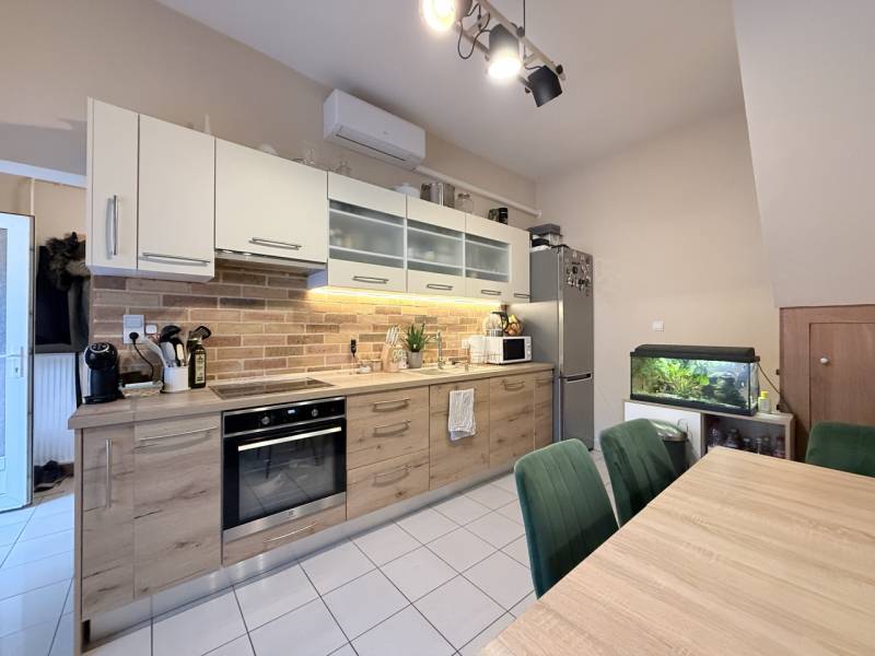 Pécel központjához közel, a Pesti úton eladó egy felújított, saját kerttel rendelkező ikerházfél.A bruttó 56 m²-es (nettó 52,75 m²) házhoz egy 25,6 m²-es, 70%-ban fedett terasz, egy 17,9 m²-es (nettó 7 m² 190 cm feletti belmagasággal) tetőtéri egy légterű helyiség, valamint 186 m² kizárólagos használatú telekrész tartozik. A kert teljes mértékben leválasztható, a saját területen két autó parkolása megoldott. A telek végében a Rákos-patak található, mely természetes, nyugodt környezetet biztosít.A vályogfalazatú ház 2017-ben teljes felújításon esett át (15 cm szigetelés, műanyag nyílászárók, új burkolatok), 2022-ben pedig további korszerűsítések történtek: a nappali és a konyha egybenyitásra került, új padlóburkolat és dísztégla fal került a nappaliba, a nyílászárók redőnyt és szúnyoghálót kaptak, a konyhába pedig új, minőségi konyhabútor és teljes Bosch–Electrolux gépészet került beépítésre.A konyha beépített gépei:– Bosch indukciós főzőlap (boost, időzítő, kifutásgátló)– Bosch mosogatógép (silent, eco, auto, 14 teríték)– Electrolux sütő (pirolitikus tisztítás, gőz funkció, 300°C)– Electrolux erős elszívóHelyiségek:– Nappali: 16,7 m²– Konyha: 14 m²– Fürdő: 2,33 m²– Előszoba: 5,3 m²– Tetőtér: 17,9 m²– Terasz: 25 m²– Saját kert: 140 m²Műszaki tartalom:– Fűtés és HMV: kondenzációs gázkazán– Radiátoros hőleadás– Hűtő–fűtő klíma– Réz villamos hálózat (32A)– Elektromos kapu– Riasztórendszer– Tároló / spejz a lépcső alatt– Kerti tároló és szigetelt medencealapA telek földmérő által készített vázrajz szerinti, ügyvédi használati megosztással rendelkezik. A lakók kulturáltak, barátságosak, egymás életét nem zavarják.Rezsiköltség: kb. 30.000 Ft/hó.Részletes környékleírás – minden egy karnyújtásraA ház Pécel központjához közel, a Pesti úton helyezkedik el.– 169E buszmegálló közvetlenül a ház előtt– Kisbolt a házzal szemben– Penny, Rossmann és a városközpont 2 perc autóval, 10 perc gyalog– Vasútállomás 10 perc sétával elérhető (Budapest 15–20 perc vonattal)– M0 autóút mindössze 2 percre– A telek végén gyalog le lehet menni a Rákos-patakhoz, kellemes természetközeli hangulatot biztosítvaINGYENES hitel tanácsadás,Otthon Start, CSOK Plusz ügyintézés!BANKFÜGGETLEN hitelcentrumunk az összes elérhető bank és hitelintézet ajánlatát versenyezteti az Ön kedvéért, ráadásul DÍJMENTESEN.- Egyedi, bankfiókban nem elérhető kamat- és díjkedvezmények- Hitelképesség vizsgálat- Idő, energia és pénz megtakarítás- Teljes hivatali ügyintézésAmennyiben hirdetésem felkeltette az érdeklődését vagy egyéb információra van szüksége hívjon bizalommal!