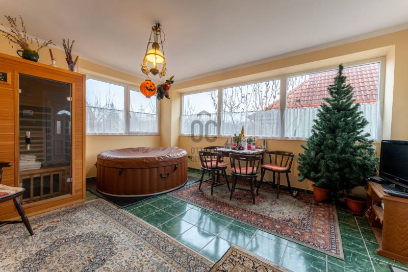 Móron, egy 649 m²-es, teljesen közművesített telken kínáljuk megvételre ezt a földszint + tetőtér kialakítású, 2013-ban szinte teljesen újjáépített, hangulatos családi házat.Kiváló választás azoknak, akik egy rendezett, nyugodt, zsákutcás környezetben szeretnének élni – bevásárlási lehetőségektől mindössze 500 méterre.Földszint: • hatalmas, napfényes nappali • egy hálószoba • konyha és étkező • tágas, fedett terasz – családi és baráti összejövetelek tökéletes helyszíne • fürdőszoba és külön WCTetőtér: • 2 lakószoba • egy nagy, világos tér, amely új tulajdonosa fantáziájára vár: lehet plusz hálószoba, játszószoba vagy dolgozószoba • WC-kézmosó, valamint zuhanyzó kialakításának lehetőségeMűszaki tartalom: • masszív beton alap, Porotherm 38-as tégla falazat, betonfödém • fa tetőszerkezet zsindelyfedéssel, üveggyapot szigeteléssel • Ariston gázkazán + padlófűtés • hangulatos, épített cserépkályha a nappaliban • rendkívül kedvező gázfogyasztás: kb. 1,5 m³/nap • műanyag nyílászárók, redőnnyel és rovarhálóval • klímaberendezés • rendszeres rovarvédelmi kezelés minden tavasszal • kamerarendszer Melléképületek, extrák: • 21,5 m²-es garázs borospincével (kb. 4 m²) • hangulatos kerti szaletli kemencével és hideg–meleg vizes mosogatóval • rendezett kert 80 tőke csemegeszőlővel • fóliasátor, medencének kialakított terület és kis kerti tó • 22 m mély fúrt kút • elektromos úszókapu, térkövezett udvarEgyéb információk: • bútorzat igény szerint megbeszélés tárgya • csereingatlan beszámítása lehetséges, értékegyeztetésselHa egy gondosan karbantartott, kényelmes és szerethető otthonra vágyik Móron, akkor ez a ház tökéletes választás lehet!Érdemes személyesen is megtekinteni – garantáltan beleszeret!Ez az ingatlan a \"Felező csomag\" megbízási portfólióhoz tartozik. Részletek az Otthon Centrum weboldalán.