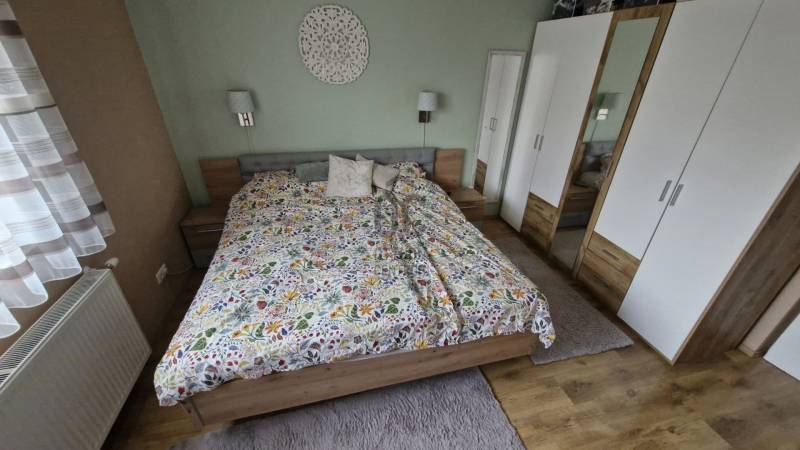 Felsőjózsán eladó egy fiatalos, teljeskörűen felújított, emeletes családi ház, nagyszerű közlekedéssel és gondozott, barátságos telekkel – tökéletes választás azoknak, akik azonnal költözhető, modern otthont keresnek.A 120 m²-es ház (80 + 40 m²) praktikus elrendezéssel várja új lakóit. A földszinten tágas nappali, étkező, modern konyha, egy hálószoba, kádas fürdő és külön WC található. Az emeleten két szoba, gardrób és zuhanyzós fürdő kapott helyet. A 13 m²-es külön bejáratú pince sokféle módon hasznosítható.Az otthon kényelméhez két klíma, kombi kazán és egy okosrendszer is hozzájárul, amelyről távolról vezérelhető a kapu, a fűtés, a klímák, a riasztó és a világítás. A 700 m²-es telek rendezett és élhető: 50 m²-es előkert díszfákkal, 40 m² fedett terasz, saját szalonnasütő, játszótér, vetemény és kétállásos beálló. Új tetőlemez, új kerítés, műanyag nyílászárók, 3 fázisú áram, 4 zónás riasztó és külső kamerák teszik biztonságossá és időtállóvá.A bolt és a buszmegálló néhány perc sétára található, így a mindennapi élet igazán kényelmes lehet. Ha egy kellemes hangulatú, modern, azonnal költözhető otthont keresel Felsőjózsán, akkor itt az ideje megtekinteni!