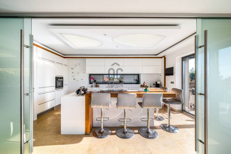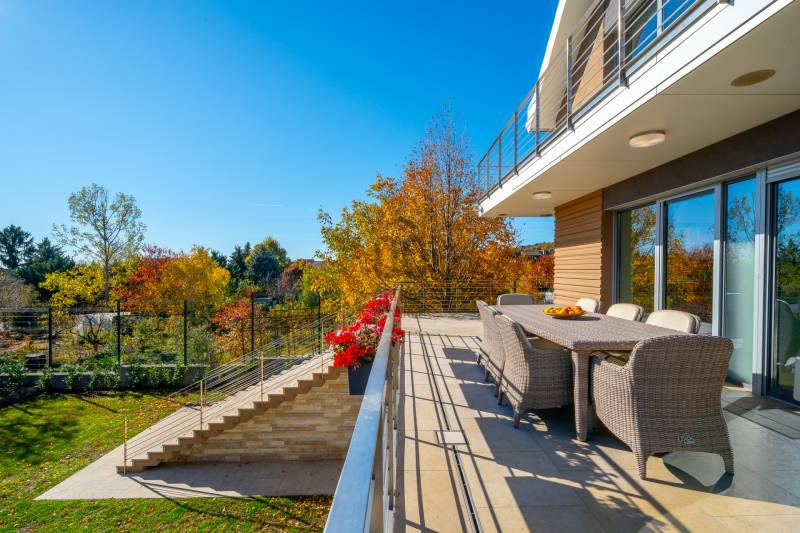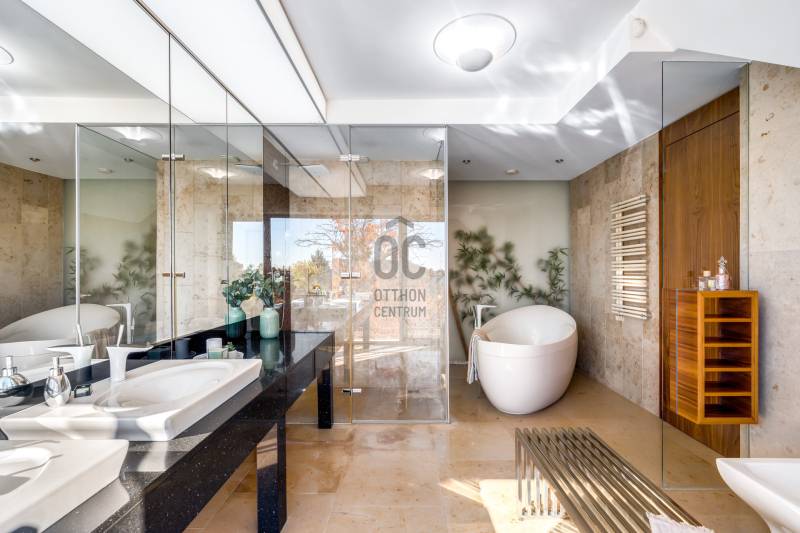 Technológiailag előremutató, anyaghasználatában időtálló, élményében családbarát villa.Üdv itthon!RÖVID ÖSSZEFOGLALÓA XII. kerület erdőszegélyén, dombtetőn áll ez a 775 m²-es, négyszintes, déli tájolású családi villa egy ~2200 m²-es telken.11 szoba, 5 fürdő, 3 külön mosdó, tágas közösségi zónák, privát wellness és fitneszterem; a kertben saját teniszpálya és kosárlabdapálya, reflektorvilágítással.Technológia: geotermikus hűtés–fűtés (szondás hőszivattyú), padló- és falfűtés, falhűtés, hővisszanyerős szellőztető rendszer, napelemek és napkollektorok, továbbá okosotthon-rendszer, beépített multiroom hangrendszer, kamerarendszer és riasztó a legmagasabb fokú biztonság érdekében, valamint lift a kényelmes, energiatudatos mindennapokhoz.ELHELYEZKEDÉS ÉS KÖRNYEZETA ház Sasad fölötti, zöld, panorámás övben található: csend, tiszta levegő és erdőközeli miliő, mégis gyors városi elérés.Autóval a Széll Kálmán tér mindössze 7–8 perc, a MOM Park 10–15 perc alatt elérhető.Kelenföld és az M1/M7 autópálya-felhajtó rövid, logikus útvonalon közelíthető meg, így a Balaton is alig egy óra alatt elérhető.A mindennapi infrastruktúrát a Hegyvidék Központ, a környék delikátjai és kispiacai adják; hétvégén a Normafa–Tündérhegy vonal kínál sétát, sportot, kilátást.Családoknak kiemelkedő az iskolai kínálat: British International School, Osztrák Iskola, több magánóvoda és sportegyesület ésszerű távolságon belül.AZ ÉPÜLET, - A MESTERMŰA villa megújulása Bényei István, Ybl- és Pro Architectura-díjas építész nevéhez fűződik, akinek munkásságát a kortárs letisztultság, a precíz arányérzék és a természetes anyagok iránti tisztelet jellemzi.A Lidérc utcai ház az ő építészeti gondolkodásának esszenciája: a fény, a kő és a tér párbeszéde – egy otthon, amely egyszerre kortárs és időtálló.A 2014-ben befejezett felújítás során a cél az volt, hogy a korábbi struktúrát megnyitott, áramló terekkel, nagy üvegfelületekkel és a táj látványát beengedő homlokzati arányokkal alakítsák újjá.Az eredmény egy építészeti mű, amelyben a Jura mészkő, a bolgár zöld–fekete kvarcit, valamint a lépcsőrészen alkalmazott brazil arany kvarcit a meleg diófa felületekkel együtt olyan karaktert és időtálló eleganciát adnak a háznak, amely ritkán található meg a budapesti kínálatban.A finom részleteket Solinfo olasz designlámpák emelik ki, a beépített bútorokat pedig a Ligno Art készítette egyedi megrendelésre.A nyílászárók 7 kamrás, háromrétegű reflexiós üvegezésű rendszerek, amelyek kiemelkedő hő- és hangszigetelést biztosítanak.A borozó ajtaja és bútorzata Ázsiából származó, több mint százéves hajófa anyagból készült, eredeti viaszolt felülettel megőrizve.Az étkező ikonikus darabja a lávakőből készült asztal, amely acél állványon nyugszik, tömege meghaladja a fél tonnát.A házhoz két garázs és több felszíni beálló is tartozik, így a parkolás elegánsan, kényelmesen megoldott.AZ OTTHON BELSŐ VILÁGAMeleg elegancia és természetes harmónia: travertin, dió, puha textúrák és nagyvonalú arányok.A nappali padlótól mennyezetig futó üvegezése a panorámát a tér díszévé emeli; a mély ülésű kanapék köre beszélgetésre és elcsendesedésre egyaránt hív.A terasz a belső tér természetes folytatása: vasárnapi ebédek, esti borozások, aranyló lombkoronák.A konyha–étkező a ház szíve: letisztult frontok, tömör dió sziget, rejtett tárolók és prémium gépek.Itt keveredik a reggeli kávé illata a gyerekek nevetésével; minden részlet a családi ritmust szolgálja.A felső szinteken világos gyerekszobák és tágas hálók sorakoznak.Nem csupán kilátás, hanem élmény: térben, fényben, biztonságban lehet felnőni; a színek nyugalma és az arányok természetes tanulási–játék–pihenő közeget teremtenek.A szülői lakrész külön univerzum: kétoldali gardrób, privát terasz és szobaméretű, panorámás fürdő, ahol kő, fény és víz időtlen egységet alkot.A wellness-szint a feltöltődés tere: mozaikos, virágmotívumos medence üvegtetővel, szauna, jacuzzi, pihenőtér és Technogym-gépekkel felszerelt fitnesz.A nagy üvegfelületeknek köszönhetően az alsó szint is fényben gazdag; itt található a borospince, a családi játéktér, és az üvegfelületek mögött egy kis japán kert, amely tovább fokozza a nyugalom és harmónia érzetét.A KERT ÉS A SAJÁT SPORTPÁLYÁKA minőségi idő és az egészséges életmód itt a mindennapok természetes része.A tágas, parkosított kertben két különleges érték kapott helyet: egy teljes méretű teniszpálya és egy saját kosárlabdapálya, reflektorvilágítással.Ilyen lehetőség ma már szinte egyedülálló Budapesten – az új szabályozások miatt újonnan ilyen pályák építése gyakorlatilag nem engedélyezett.Ez a villa ezért nemcsak a kényelmet, hanem az aktív életmód szabadságát is biztosítja – mindezt a saját kert intimitásán belül.Összegzés és kapcsolatfelvételEz a ház azokat szólítja meg, akik a természet közelségét, a kényelmet és a valódi otthonélményt keresik — rang, tér és nyugalom kiegyensúlyozott egységében.Olyan otthon, ahol a gyerekek szabadságban nőnek fel, a felnőttek pedig békében élhetnek – ahol minden nap emlékké válik.Ha szeretné megtapasztalni, milyen, amikor a panoráma, a fény és a természet harmóniája adja az otthon valódi értelmét,kérem, vegye fel velem a kapcsolatot, és beszéljük meg a következő lépést.