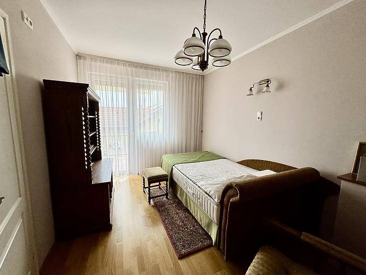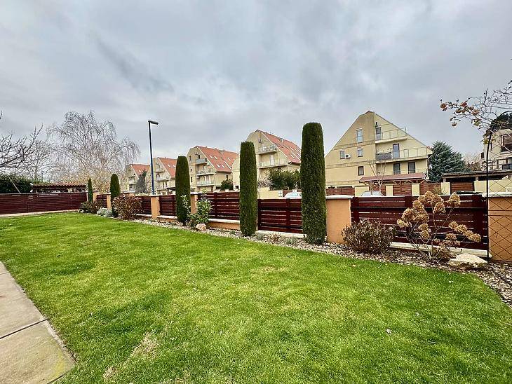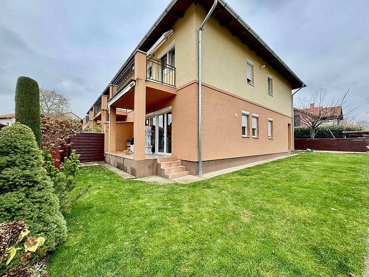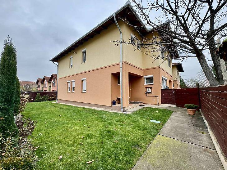 Eladó sorház Dunakeszi kedvelt Alagligeti lakóparkjában!Dunakeszi egyik legkeresettebb, nyugodt és családbarát részén, az Alagligeti lakóparkban kínálunk megvételre egy 118 nm-es, 2007-ben épült, sorházat, amely kiváló lehetőség családosok, fiatal párok vagy nyugalomra vágyók részére.A ház minőségi anyagokból épült, minőségi kivitelezéssel, 3 rétegű műanyag nyílászárók, a nappaliban, és a szobákban hatalmas ablakok a terasz és az erkélyek felé. Minden ablakra redőny került beszerelésre, kívülről 12 cm-es hőszigetelést kapott, a szobákon kívül minden helyiségben padló fűtés lett kialakítva.A fenti szinten három hálószoba és egy fürdőszoba, valamint egy mosókonyha, az alsó szinten egy spájz, egy tároló, egy vendégszoba és egy fürdőszoba került kialakításra, valamint mindezek mellett egy hatalmas amerikai konyhás nappali.A kert teljes mértékben rendezett, térkövezett, illetve prémium minőségű fűmaggal van betelepítve.A környék csendes, rendezett – ideális választás mindazoknak, akik harmóniára, nyugalomra vágynak, ugyanakkor fontos számukra a város közelsége és a kiváló infrastruktúra.A közelben megtalálható bevásárló központ és gyógyszertárak, illetve az iskola, óvoda és bölcsőde közelsége is elérhető távolságon belül található gyerekesek számára.Tökéletes lehetőség családosoknak és azoknak, akik egy saját ízlésükre szabható otthont keresnek Dunakeszi egyik legjobb környékén!Kérdésével, illetve megtekintési szándékával kérem keresse irodánkat.Az ingatlan hitelre is megvásárolható. Bankfüggetlen tanácsadóink, az ország összes pénzintézete közül gyorsan és gördülékenyen találja meg az Önnek legmegfelelőbb konstrukciót, egyedi kedvezményekkel. A hitel közvetítés díjmentes.