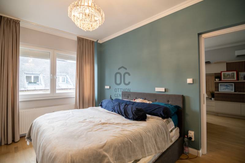 Eladó egy 93 m²-es, 4 szobás, kiváló állapotú, tágas társasházi lakás Lágymányos egyik legjobb részén. A lakás a teljes 5-ik emeleten egyedül helyezkedik el, így rendkívüli privát, csendes, zárt érzetet biztosít – valódi ritkaság a környéken.A ház liftes, a lépcsőház és a közös területek rendezettek, karbantartottak. A fűtés házközponti egyedi méréssel, a lakás délnyugati tájolású, utcai nézettel.Parkolás: a ház alatt található magánteremgarázsban időszakosan bérelhető vagy vásárolható beálló (kb. 30.000 Ft/hó-tól). A környéken ez nagy előny.Helyiségek: tágas nappali (24 m²), három különnyíló szoba, nagy étkezős konyha (16 m²), fürdő + WC, külön WC, gardrób, közlekedők.Nappalija szuper világos, mivel az erkély rész teljesne be lett építve és ott fal helyett végig üveg van. Állapot: lakás – kiváló, homlokzat – jó, lépcsőház – kiváló.Lokáció: Bartók Béla út – galériák, kávézók, BME/ELTE, Móricz és Gellért tér pár perc sétára. Közlekedés kiemelkedő: 4-6, 19, 49-es villamos, gyorsbuszok.Birtokbaadás: max. 4 hónap, de akár hamarabb is lehetséges.Az ingatlan a Hűség értékesítési csomag keretében érhető el, amelynek részleteiről szóban tudunk egyeztetni. Keressen bizalommal, ha megtekintené.Ez az ingatlan a \"Hűség csomag\" megbízási portfólióhoz tartozik. Részletek az Otthon Centrum weboldalán.