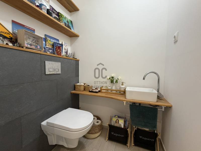 Budán, Testvérhegy egyik forgalomtól elzárt, hangulatos zsákutcájában kínálunk bérbe egy igényesen felújított, külön bejáratú házrészt. Az ingatlanhoz egy körülbelül 600 m²-es, saját használatú kertrész tartozik, amelyet egy elegáns, 100 m²-es privát terasz egészít ki – így a szabadtéri pihenés, a reggeli kávé vagy az esti borozás is tökéletes helyszínt kap.A házrész nettó 101 m²-es, modern, letisztult belső terekkel rendelkezik. A tágas amerikai konyhás nappali a mindennapok központja, amely harmonikusan kapcsolódik a kert látványához. A hálószoba kényelmes és csendes, mellette pedig egy dolgozósarok biztosít ideális helyet az otthoni munkavégzéshez. A fürdőszoba különleges élményt nyújt a káddal, a zuhanyzóval és a saját szaunával, míg a gardróbszoba – igény esetén – akár második hálószobává is alakítható. A lakást egy előszoba és egy különálló WC teszi teljessé. A teljesen felújított belső tér modern, igényes és barátságos hangulatot áraszt.Az elhelyezkedés kiemelkedő: Testvérhegy zöldövezeti nyugalma a főváros egyik legkeresettebb atmoszféráját biztosítja, miközben a közeli buszjáratokkal Óbuda, Békásmegyer és a HÉV gyorsan és kényelmesen elérhető. A környék csendes, biztonságos, rendezett, tökéletes azoknak, akik szeretnének kiszakadni a város zajából, de nem mondanának le a könnyű megközelíthetőségről.A bérleti díjon felül a rezsiköltség mindössze havi 40.000 forint, amely minden közműdíjat magában foglal, így a havi kiadások teljes mértékben kiszámíthatóak és átláthatóak.Ha egy modern, természetközeli, saját kertkapcsolattal rendelkező, exkluzív házrészt keres Testvérhegyen, akkor ez az ingatlan ritka és kivételes lehetőség. Szívesen küldök további részleteket vagy egyeztetek időpontot a személyes megtekintésre.