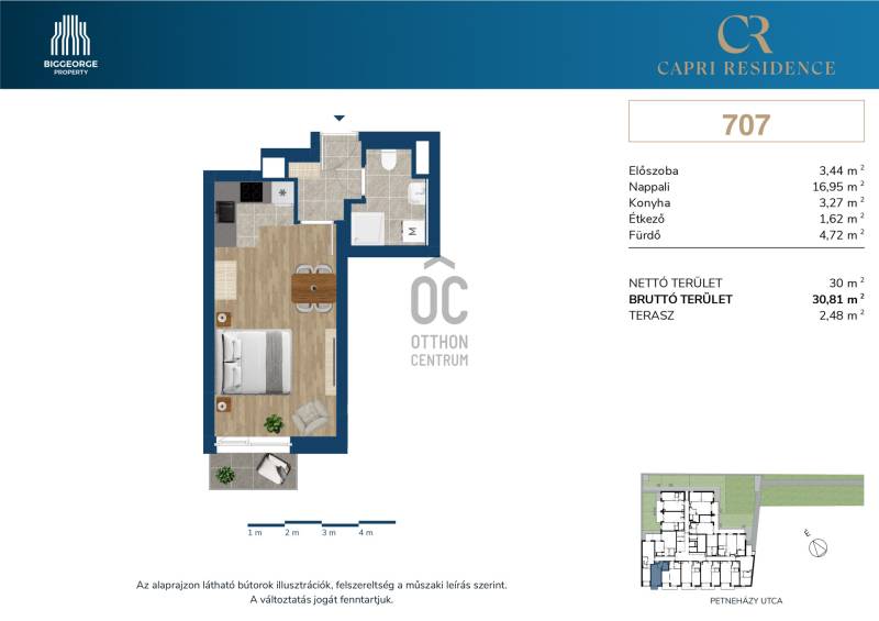 Projekt bemutatásaA Capri Residence a XIII. kerület szívében, a dinamikusan fejlődő Váci út közvetlen közelében valósul meg, amely Budapest egyik legkeresettebb lakáspiaci területe. Az elegáns, modern megjelenésű épületet, a homlokzatán végigfutó üvegkorlátos teraszok díszítik majd, a felsőbb szinteken pedig nagyteraszos lakások is elérhetők, amelyek egy része panorámás kilátást biztosít.Az épületben összesen 112 lakás kap helyet, amelyek elrendezése a stúdiótól a nappali plusz három hálószobásig terjednek. Az épületben emellett egy közösségi tér, 122 parkolóhely, 62 tároló, valamint opcionálisan elektromos autótöltővel szerelt teremgarázs beállók is megépítésre kerülnek.A műszaki felszereltség a legmagasabb szakmai trendeket követi: a Capri Residence lakóinak kényelmét mennyezeti hűtés-fűtés, háromrétegű üvegezéssel ellátott műanyag nyílászárók, smart-home előkészítés, valamint belsőépítész által összeállított belső anyagválaszték biztosítja majd. A földszinti lakásokhoz privát kertkapcsolat tartozik, emellett a társasház közös díszkerttel is rendelkezik.
