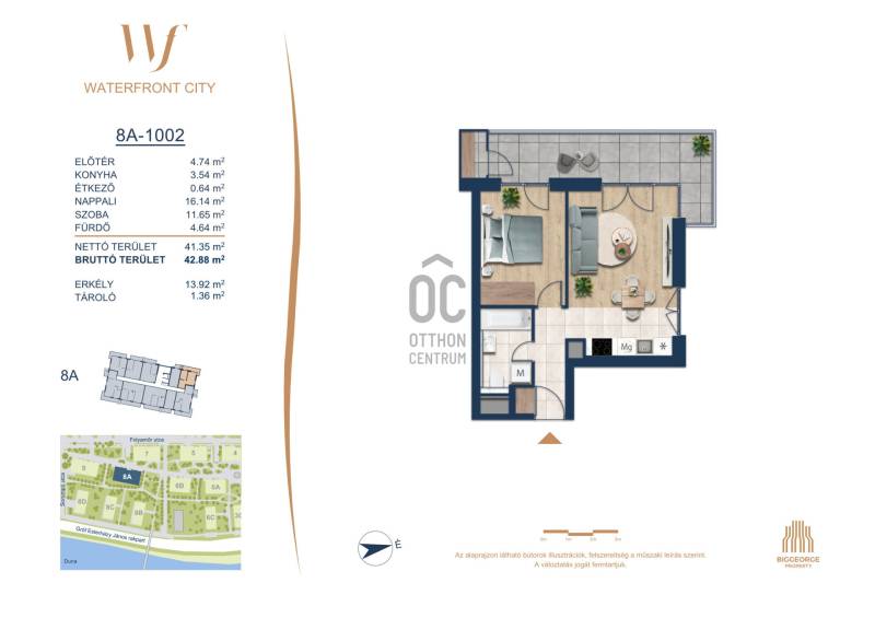 Projekt bemutatásaA projektrőlA Waterfront City egy új, modern városnegyed a 3. kerületben, ahol a természet közelsége és a városi kényelem tökéletes egyensúlyban van. A Duna-part közvetlen szomszédságában elhelyezkedő fejlesztés különleges atmoszférát kínál: a sétányt új épületek határolják, üzletekkel, kávézókkal és szolgáltatásokkal, amelyek élhető közösségi teret teremtenek.A 13 emeletes lakóépületből lenyűgöző örökpanoráma nyílik a budai hegyekre és a folyóra, a tágas teraszok pedig ideálisak a pihenéshez vagy a baráti összejövetelekhez. A zöldtetők, parkosított terek és fenntartható megoldások – mint az energiatakarékos rendszerek és okos otthon funkciók – mind hozzájárulnak a modern, környezettudatos életstílushoz.Látogass el értékesítési irodánkba, és tekintsd meg a városnegyed makettjét személyesen! Ismerd meg, milyen lesz az élet Budapest egyik legizgalmasabb új fejlesztésében!Óbuda szívébenKépzeld el, ahogy egy napsütéses délelőttön Óbuda szívében sétálsz, a Duna közelsége frissítően hat rád, miközben a Folyamőr utca, a Miklós tér és a Bogdáni út által határolt, öt hektáros területre érsz. A levegőben ott van a város történelme, mégis minden részletében a jövő hívogat.A 50 000 négyzetméteres területen egy hangulatos sétány vezet végig, amely egyenesen az óbudai Fő térre visz – mindössze 600 méterre. Ez a sétány nem csupán összeköt, hanem élményt nyújt: a Kolosy térről induló Óbudai Promenád részeként a város egyik legélhetőbb, legpezsgőbb szakaszán haladsz végig. És ha biciklivel érkeznél? A nemzetközi kerékpárút is itt halad el, Szentendre felé vezetve.Az 5. ütemben épülő 149 lakás mindegyike egyedi hangulatot kínál. Ahogy belépsz egy-egy otthonba, a hatalmas üvegfelületeken át beáradó fény és a tágas, szellős terek azonnal magukkal ragadnak. A kilátás? A Kaszap István park zöldje nyújt békét, míg a felsőbb emeletekről a Budai-hegység örökpanorámája tárul eléd – minden nap egy új festmény az ablakodban.A 6. ütemben 316 modern lakás épül, tágas teraszokkal és lenyűgöző kilátással a Dunára és a budai hegyekre. A lakók kényelmét őrszolgálat, kamerarendszer, mélygarázs, vendéglátóhelyek, belső park, játszótér és E-autó töltők szolgálják. Ez a projekt utolsó üteme, amely még közvetlen Duna-parti kapcsolattal rendelkezik.