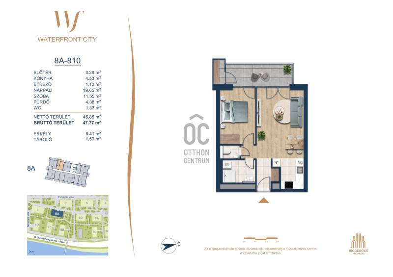 Projekt bemutatásaA projektrőlA Waterfront City egy új, modern városnegyed a 3. kerületben, ahol a természet közelsége és a városi kényelem tökéletes egyensúlyban van. A Duna-part közvetlen szomszédságában elhelyezkedő fejlesztés különleges atmoszférát kínál: a sétányt új épületek határolják, üzletekkel, kávézókkal és szolgáltatásokkal, amelyek élhető közösségi teret teremtenek.A 13 emeletes lakóépületből lenyűgöző örökpanoráma nyílik a budai hegyekre és a folyóra, a tágas teraszok pedig ideálisak a pihenéshez vagy a baráti összejövetelekhez. A zöldtetők, parkosított terek és fenntartható megoldások – mint az energiatakarékos rendszerek és okos otthon funkciók – mind hozzájárulnak a modern, környezettudatos életstílushoz.Látogass el értékesítési irodánkba, és tekintsd meg a városnegyed makettjét személyesen! Ismerd meg, milyen lesz az élet Budapest egyik legizgalmasabb új fejlesztésében!Óbuda szívébenKépzeld el, ahogy egy napsütéses délelőttön Óbuda szívében sétálsz, a Duna közelsége frissítően hat rád, miközben a Folyamőr utca, a Miklós tér és a Bogdáni út által határolt, öt hektáros területre érsz. A levegőben ott van a város történelme, mégis minden részletében a jövő hívogat.A 50 000 négyzetméteres területen egy hangulatos sétány vezet végig, amely egyenesen az óbudai Fő térre visz – mindössze 600 méterre. Ez a sétány nem csupán összeköt, hanem élményt nyújt: a Kolosy térről induló Óbudai Promenád részeként a város egyik legélhetőbb, legpezsgőbb szakaszán haladsz végig. És ha biciklivel érkeznél? A nemzetközi kerékpárút is itt halad el, Szentendre felé vezetve.Az 5. ütemben épülő 149 lakás mindegyike egyedi hangulatot kínál. Ahogy belépsz egy-egy otthonba, a hatalmas üvegfelületeken át beáradó fény és a tágas, szellős terek azonnal magukkal ragadnak. A kilátás? A Kaszap István park zöldje nyújt békét, míg a felsőbb emeletekről a Budai-hegység örökpanorámája tárul eléd – minden nap egy új festmény az ablakodban.A 6. ütemben 316 modern lakás épül, tágas teraszokkal és lenyűgöző kilátással a Dunára és a budai hegyekre. A lakók kényelmét őrszolgálat, kamerarendszer, mélygarázs, vendéglátóhelyek, belső park, játszótér és E-autó töltők szolgálják. Ez a projekt utolsó üteme, amely még közvetlen Duna-parti kapcsolattal rendelkezik.