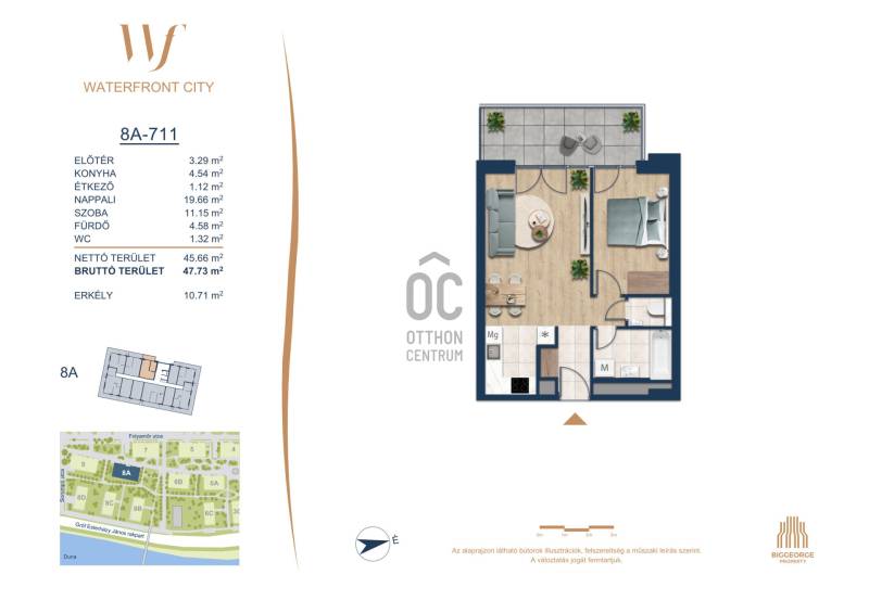 Projekt bemutatásaA projektrőlA Waterfront City egy új, modern városnegyed a 3. kerületben, ahol a természet közelsége és a városi kényelem tökéletes egyensúlyban van. A Duna-part közvetlen szomszédságában elhelyezkedő fejlesztés különleges atmoszférát kínál: a sétányt új épületek határolják, üzletekkel, kávézókkal és szolgáltatásokkal, amelyek élhető közösségi teret teremtenek.A 13 emeletes lakóépületből lenyűgöző örökpanoráma nyílik a budai hegyekre és a folyóra, a tágas teraszok pedig ideálisak a pihenéshez vagy a baráti összejövetelekhez. A zöldtetők, parkosított terek és fenntartható megoldások – mint az energiatakarékos rendszerek és okos otthon funkciók – mind hozzájárulnak a modern, környezettudatos életstílushoz.Látogass el értékesítési irodánkba, és tekintsd meg a városnegyed makettjét személyesen! Ismerd meg, milyen lesz az élet Budapest egyik legizgalmasabb új fejlesztésében!Óbuda szívébenKépzeld el, ahogy egy napsütéses délelőttön Óbuda szívében sétálsz, a Duna közelsége frissítően hat rád, miközben a Folyamőr utca, a Miklós tér és a Bogdáni út által határolt, öt hektáros területre érsz. A levegőben ott van a város történelme, mégis minden részletében a jövő hívogat.A 50 000 négyzetméteres területen egy hangulatos sétány vezet végig, amely egyenesen az óbudai Fő térre visz – mindössze 600 méterre. Ez a sétány nem csupán összeköt, hanem élményt nyújt: a Kolosy térről induló Óbudai Promenád részeként a város egyik legélhetőbb, legpezsgőbb szakaszán haladsz végig. És ha biciklivel érkeznél? A nemzetközi kerékpárút is itt halad el, Szentendre felé vezetve.Az 5. ütemben épülő 149 lakás mindegyike egyedi hangulatot kínál. Ahogy belépsz egy-egy otthonba, a hatalmas üvegfelületeken át beáradó fény és a tágas, szellős terek azonnal magukkal ragadnak. A kilátás? A Kaszap István park zöldje nyújt békét, míg a felsőbb emeletekről a Budai-hegység örökpanorámája tárul eléd – minden nap egy új festmény az ablakodban.A 6. ütemben 316 modern lakás épül, tágas teraszokkal és lenyűgöző kilátással a Dunára és a budai hegyekre. A lakók kényelmét őrszolgálat, kamerarendszer, mélygarázs, vendéglátóhelyek, belső park, játszótér és E-autó töltők szolgálják. Ez a projekt utolsó üteme, amely még közvetlen Duna-parti kapcsolattal rendelkezik.
