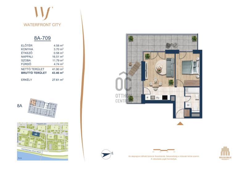 Projekt bemutatásaA projektrőlA Waterfront City egy új, modern városnegyed a 3. kerületben, ahol a természet közelsége és a városi kényelem tökéletes egyensúlyban van. A Duna-part közvetlen szomszédságában elhelyezkedő fejlesztés különleges atmoszférát kínál: a sétányt új épületek határolják, üzletekkel, kávézókkal és szolgáltatásokkal, amelyek élhető közösségi teret teremtenek.A 13 emeletes lakóépületből lenyűgöző örökpanoráma nyílik a budai hegyekre és a folyóra, a tágas teraszok pedig ideálisak a pihenéshez vagy a baráti összejövetelekhez. A zöldtetők, parkosított terek és fenntartható megoldások – mint az energiatakarékos rendszerek és okos otthon funkciók – mind hozzájárulnak a modern, környezettudatos életstílushoz.Látogass el értékesítési irodánkba, és tekintsd meg a városnegyed makettjét személyesen! Ismerd meg, milyen lesz az élet Budapest egyik legizgalmasabb új fejlesztésében!Óbuda szívébenKépzeld el, ahogy egy napsütéses délelőttön Óbuda szívében sétálsz, a Duna közelsége frissítően hat rád, miközben a Folyamőr utca, a Miklós tér és a Bogdáni út által határolt, öt hektáros területre érsz. A levegőben ott van a város történelme, mégis minden részletében a jövő hívogat.A 50 000 négyzetméteres területen egy hangulatos sétány vezet végig, amely egyenesen az óbudai Fő térre visz – mindössze 600 méterre. Ez a sétány nem csupán összeköt, hanem élményt nyújt: a Kolosy térről induló Óbudai Promenád részeként a város egyik legélhetőbb, legpezsgőbb szakaszán haladsz végig. És ha biciklivel érkeznél? A nemzetközi kerékpárút is itt halad el, Szentendre felé vezetve.Az 5. ütemben épülő 149 lakás mindegyike egyedi hangulatot kínál. Ahogy belépsz egy-egy otthonba, a hatalmas üvegfelületeken át beáradó fény és a tágas, szellős terek azonnal magukkal ragadnak. A kilátás? A Kaszap István park zöldje nyújt békét, míg a felsőbb emeletekről a Budai-hegység örökpanorámája tárul eléd – minden nap egy új festmény az ablakodban.A 6. ütemben 316 modern lakás épül, tágas teraszokkal és lenyűgöző kilátással a Dunára és a budai hegyekre. A lakók kényelmét őrszolgálat, kamerarendszer, mélygarázs, vendéglátóhelyek, belső park, játszótér és E-autó töltők szolgálják. Ez a projekt utolsó üteme, amely még közvetlen Duna-parti kapcsolattal rendelkezik.