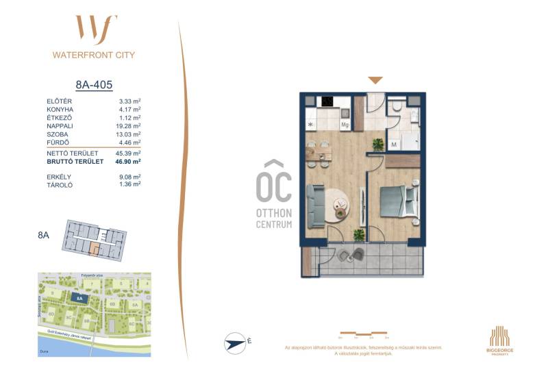 Projekt bemutatásaA projektrőlA Waterfront City egy új, modern városnegyed a 3. kerületben, ahol a természet közelsége és a városi kényelem tökéletes egyensúlyban van. A Duna-part közvetlen szomszédságában elhelyezkedő fejlesztés különleges atmoszférát kínál: a sétányt új épületek határolják, üzletekkel, kávézókkal és szolgáltatásokkal, amelyek élhető közösségi teret teremtenek.A 13 emeletes lakóépületből lenyűgöző örökpanoráma nyílik a budai hegyekre és a folyóra, a tágas teraszok pedig ideálisak a pihenéshez vagy a baráti összejövetelekhez. A zöldtetők, parkosított terek és fenntartható megoldások – mint az energiatakarékos rendszerek és okos otthon funkciók – mind hozzájárulnak a modern, környezettudatos életstílushoz.Látogass el értékesítési irodánkba, és tekintsd meg a városnegyed makettjét személyesen! Ismerd meg, milyen lesz az élet Budapest egyik legizgalmasabb új fejlesztésében!Óbuda szívébenKépzeld el, ahogy egy napsütéses délelőttön Óbuda szívében sétálsz, a Duna közelsége frissítően hat rád, miközben a Folyamőr utca, a Miklós tér és a Bogdáni út által határolt, öt hektáros területre érsz. A levegőben ott van a város történelme, mégis minden részletében a jövő hívogat.A 50 000 négyzetméteres területen egy hangulatos sétány vezet végig, amely egyenesen az óbudai Fő térre visz – mindössze 600 méterre. Ez a sétány nem csupán összeköt, hanem élményt nyújt: a Kolosy térről induló Óbudai Promenád részeként a város egyik legélhetőbb, legpezsgőbb szakaszán haladsz végig. És ha biciklivel érkeznél? A nemzetközi kerékpárút is itt halad el, Szentendre felé vezetve.Az 5. ütemben épülő 149 lakás mindegyike egyedi hangulatot kínál. Ahogy belépsz egy-egy otthonba, a hatalmas üvegfelületeken át beáradó fény és a tágas, szellős terek azonnal magukkal ragadnak. A kilátás? A Kaszap István park zöldje nyújt békét, míg a felsőbb emeletekről a Budai-hegység örökpanorámája tárul eléd – minden nap egy új festmény az ablakodban.A 6. ütemben 316 modern lakás épül, tágas teraszokkal és lenyűgöző kilátással a Dunára és a budai hegyekre. A lakók kényelmét őrszolgálat, kamerarendszer, mélygarázs, vendéglátóhelyek, belső park, játszótér és E-autó töltők szolgálják. Ez a projekt utolsó üteme, amely még közvetlen Duna-parti kapcsolattal rendelkezik.