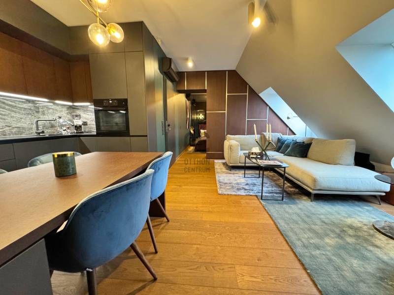 Eladó Budapest IX. kerületében, a Rehabilitációs területen, a Lenhossék utcában egy nettó 37 m²-es, tetőtéri, másfél szobás, teljes bútorzattal felszerelt lakás!A 2020-ban épült, modern társasház a régi épület felújított homlokzati elemeit megtartva készült, a Kerekerdő park közvetlen közelében.A lakás nettó 37 m² (összes alapterület 51 m²), kiváló elrendezéssel és világos terekkel. A tulajdonos magas minőségű burkolatokat, bútorokat és egyedi tervezésű dizájnelemeket építtetett be, így az ingatlan valóban prémium érzetet nyújt.A lakás teljes bútorzattal kerül átadásra, így azonnal költözhető, további beruházást nem igényel.Vásárolható a lakáshoz egy tároló 3,7 m2 ára: 3M.-Ft és egy gépkocsibeálló a mélygarázsban ára 9M.-Ft. Főbb jellemzők:Tetőtéri, másfél szobás kialakításTeljes bútorzattal eladóMagas minőségi burkolatok és bútorokIgényes, egyedi dizájn2020-ban épült társasházKlíma és egyedi mérésű házközponti fűtésKiváló állapot, azonnal költözhetőCsendes, biztonságos környékKiváló közlekedés: busz- és villamosmegállók néhány perc alatt elérhetőkÜzletek, éttermek, szolgáltatások a közelbenA környék folyamatos fejlődése miatt a lakás kiemelkedő befektetés, ugyanakkor első otthonnak is tökéletes választás.Amennyiben kérdése lenne, vagy szeretné megtekinteni személyesen is, kérem hívjon bizalommal, várom.Teljeskörű pénzügyi és jogi háttér-szolgáltatással várom kedves ügyfeleimet.