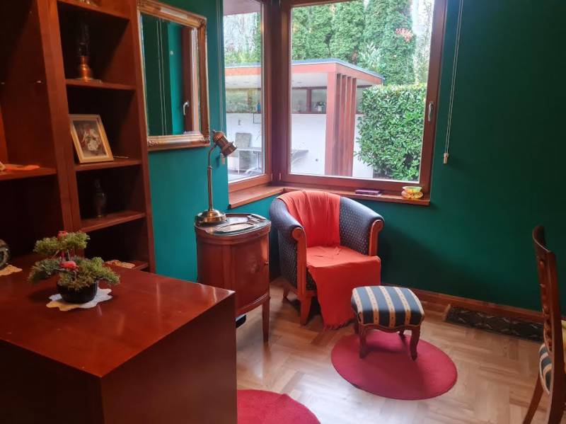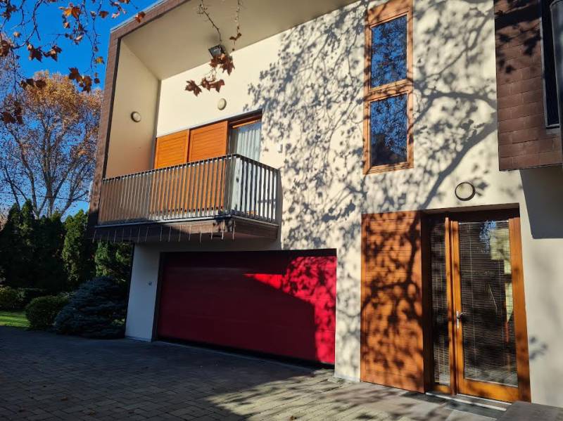 KÜLÖNLEGES AJÁNLAT, IGÉNYES POLGÁRI VILLA TELJES BERENDEZÉSSEL, FÜGGÖNYÖKKEL,SZŐNYEGEKKEL, FESTNÉNYEKKEL, LÁMPÁKKAL, DÍSZTÁRGYAKKAL, MŰSZAKI BERENDEZÉSEKKEL EGYÜTT!Rómaifürdőn eladó egy gyönyörű polgári villa medencével, szaunával, dupla garázzsal, egyedi különlegesburkolatokkal teljes berendezéssel együtt!TELJES INTIMITÁS, MAXIMÁLIS IGÉNYESSÉG!!Sík, gyönyörű parkosított telken található ez a főleg földszintes, 2009-ben épült villa.Ybl díjas építészek tervezték, és neves belsőépítész álmodta meg az épületet.A bejáraton kívül, akár a dupla garázson keresztül is bejuthatunk az épületbe.A földszinten kertkapcsolatos amerikai konyhás nappali nagy terasszal, 2 hálószoba mindegyikhez külön fürdőszoba, gardróbszoba, mosókonyha, társalgó, szauna fürdőszoba, külön wc és dupla garázs található.A közlekedőből vezet fel a lépcső az emeletre, ahol egy külön lakrész található fürdőszobával.A kert tele különleges növényekkel, medence kerti nyári konyha, teraszok!-Az épületben nincsenek radiátorok, és légkondicionáló berendezés sincs, mert a ház fűtését és hűtését padló, plafon és oldalfal fűtés biztosítja. Minden szoba hőmérsékletét külön termosztáttal lehet szabályozni.-Mindhárom hálószobához külön fürdőszoba tartozik.-Gyönyörű fa nyílászárók, alumínium automata redőnyök- Terazzo nemes, patinás olasz díszburkolatok a nappaliban, a konyhában, az étkezőben és az előszobában,-Víztisztító berendezés, automata öntözőrendszer, fúrt kút,-Dupla garázs, automata kapu és garázskapu-Gyönyörű konyhabútor kamrával, igényes gépekkel beépítve-Egyedi tervezésű bútorok-9 x 4.5-es 1.40 mély vízforgatós fűtött kültéri medence motoros víztakarással,-A hátsó kertben a medence mellett egy nyitott, de fedett nyári konyha grillsütővel, mosogatóval-Kandalló, szauna, külső-belső riasztóberendezés-Beépített gardróbszoba, abból nyíló háztartási helyiség mosó és szárítógéppel-Tömör akác lépcső vezet az emeletre, ahol egy külön lakrész található fürdőszobával.-Rendkívül intim kert, sehonnan nem lehet belátni-Fával burkolt kukatároló, fatároló-A hátsó oldali nyeregtetős részen egyedi gyártású gardróbok, és több tárolórész találhatóEz egy különlegesen igényes és szép épület Rómaifürdőn, olyannyira intim,, hogy az utcáról nem is látható!Nézze meg, bele fog szeretni!