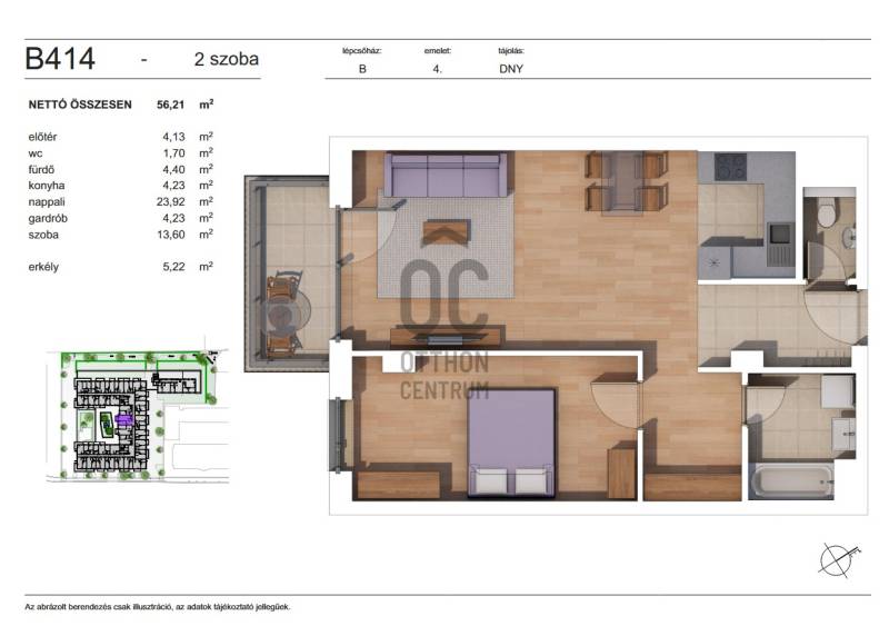 Az ingatlan nettó alapterülete 56,21 m² + 5,22 m² erkély.Projekt bemutatásaEladó lakások Zugló szívében! A modern, világos, élhető lakások minden igényt kielégítenek.A belváros percek alatt elérhető, mind autóval, mind tömegközlekedéssel.Az épület különleges homlokzatának köszönhetően kertes lakások is elérhetők, az épületek aljában pedig üzlethelyiségek kerülnek kialakításra.FŐBB JELLEMZŐK:- korszerű épület, kiépített kamerarendszer- kiváló elhelyezkedés: az Erzsébet Palace Zugló központjában található, ahol minden kényelmi szolgáltatás könnyen elérhető.- napfényes lakások: minden lakás benapozott, így természetes fényben fürdőzhet. - kiváló közlekedés: szuper tömegközlekedési lehetőségek állnak rendelkezésre, hogy bárhová könnyedén eljuthasson. - széles körű lakáskínálat: a modern kialakítású lakások nappali+1 szobás, illetve nappali+2 szobás elrendezésben érhetők el. Néhány földszinti lakás kertkapcsolattal is rendelkezik, automata öntözőberendezéssel. - üzlethelyiségek: a földszinten számos üzlethelyiség kap helyet, hogy minden szükséges szolgáltatás a közelben legyen. - parkolási lehetőségek: belső és külső parkolók biztosítják az autók kényelmes és biztonságos elhelyezését. - parkosított környezet: a belső udvar gondosan kialakított, növényekkel és fákkal díszített zöld oázis, amely nyugalmat és kikapcsolódást nyújt. - belső bejáratok: a főbejáratok a belső udvarról nyílnak, biztosítva a lakók privát szféráját és biztonságát. Főbb műszaki tartalom:- energiatakarékos, környezetbarát mennyezeti hűtő-fűtő rendszer- egyedi, modern burkolat -és szaniterválaszték- igény szerint belső design tervezés- okos rendszer- garázs és tároló különböző méretekben - elektromosautó-töltési lehetőségA KÖRNYÉKBelvárosi ellátottság, külvárosi nyugalom.- Kolozsvár utcai piac 400 méter, sportpálya 500 méter, cukrászda, Tesco 200 méter- kávézó, pékség, fodrászat, masszázs, kozmetika szolárium a ház előtt közvetlenül- 100 méterre busz (5, 973, 973A) és villamosmegálló (62, 62A, 69)- Városliget 12 perc 5-ös busszal- Bosnyák téri piac 12 perc busszal (124, 125, 125B)Ne hagyja ki ezt a kivételes lehetőséget, hogy egy ilyen exkluzív lakóparkban éljen! Az Erzsébet Palace lakásai tökéletes otthont nyújtanak mindenkinek, aki értékeli a kényelmet, a modern dizájnt és a kiváló elhelyezkedést. Érdeklődjön most, és találja meg itt álmai otthonát!Tervezett átadás: 2025. III. negyedévSzakaszos fizetési ütemezéssel! Garázs és tároló vásárolható!- garázs: normál 6 MFt, nagy 9 MFt, csökkentett 5 MFt- tároló: 5 m2 -nél kisebb: 950 000 Ft/m2, 5m2-nél nagyobb: 900 000 Ft/m2
