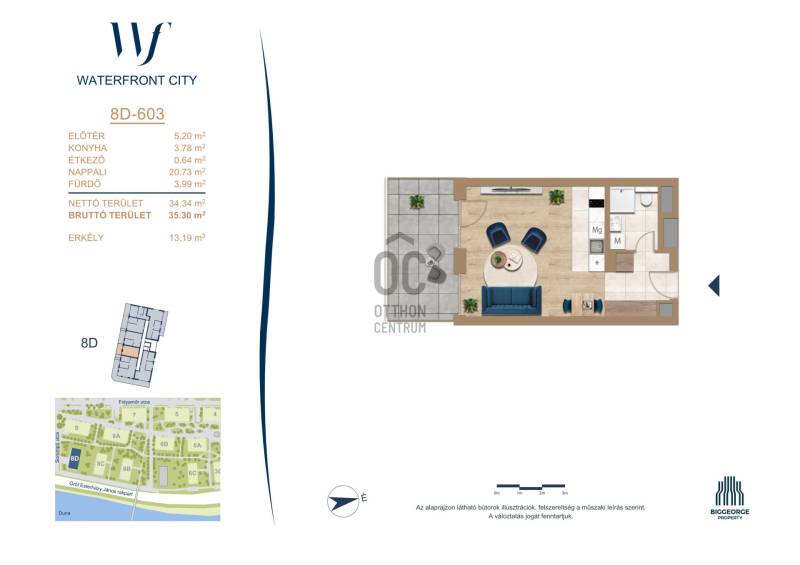 Projekt bemutatásaA projektrőlA Waterfront City egy új, modern városnegyed a 3. kerületben, ahol a természet közelsége és a városi kényelem tökéletes egyensúlyban van. A Duna-part közvetlen szomszédságában elhelyezkedő fejlesztés különleges atmoszférát kínál: a sétányt új épületek határolják, üzletekkel, kávézókkal és szolgáltatásokkal, amelyek élhető közösségi teret teremtenek.A 13 emeletes lakóépületből lenyűgöző örökpanoráma nyílik a budai hegyekre és a folyóra, a tágas teraszok pedig ideálisak a pihenéshez vagy a baráti összejövetelekhez. A zöldtetők, parkosított terek és fenntartható megoldások – mint az energiatakarékos rendszerek és okos otthon funkciók – mind hozzájárulnak a modern, környezettudatos életstílushoz.Látogass el értékesítési irodánkba, és tekintsd meg a városnegyed makettjét személyesen! Ismerd meg, milyen lesz az élet Budapest egyik legizgalmasabb új fejlesztésében!Óbuda szívébenKépzeld el, ahogy egy napsütéses délelőttön Óbuda szívében sétálsz, a Duna közelsége frissítően hat rád, miközben a Folyamőr utca, a Miklós tér és a Bogdáni út által határolt, öt hektáros területre érsz. A levegőben ott van a város történelme, mégis minden részletében a jövő hívogat.A 50 000 négyzetméteres területen egy hangulatos sétány vezet végig, amely egyenesen az óbudai Fő térre visz – mindössze 600 méterre. Ez a sétány nem csupán összeköt, hanem élményt nyújt: a Kolosy térről induló Óbudai Promenád részeként a város egyik legélhetőbb, legpezsgőbb szakaszán haladsz végig. És ha biciklivel érkeznél? A nemzetközi kerékpárút is itt halad el, Szentendre felé vezetve.Az 5. ütemben épülő 149 lakás mindegyike egyedi hangulatot kínál. Ahogy belépsz egy-egy otthonba, a hatalmas üvegfelületeken át beáradó fény és a tágas, szellős terek azonnal magukkal ragadnak. A kilátás? A Kaszap István park zöldje nyújt békét, míg a felsőbb emeletekről a Budai-hegység örökpanorámája tárul eléd – minden nap egy új festmény az ablakodban.A 6. ütemben 316 modern lakás épül, tágas teraszokkal és lenyűgöző kilátással a Dunára és a budai hegyekre. A lakók kényelmét őrszolgálat, kamerarendszer, mélygarázs, vendéglátóhelyek, belső park, játszótér és E-autó töltők szolgálják. Ez a projekt utolsó üteme, amely még közvetlen Duna-parti kapcsolattal rendelkezik.