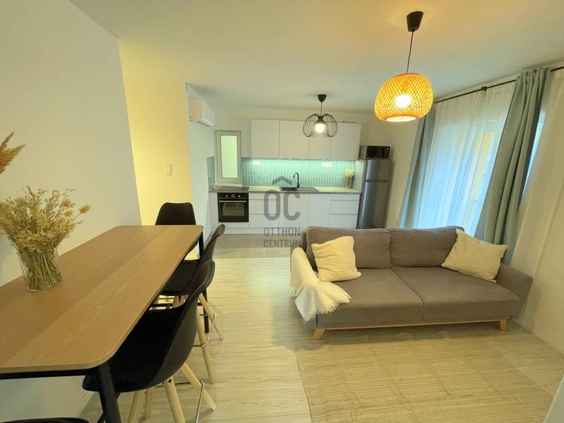 Minimum egy évre kiadó Budapest VI. kerület nagyvárosias részén található Szondi utca - Székely Bertalan utca sarkán 2022-ben átadott újépítésű társasházban egy egyedi fekvésű, kifinomult ízléssel kialakított 41 nm alapterületű lakás!A lakás 4. emeleti, két utcafronttal rendelkezik, közvetlen szomszédja nincs, az amerikai konyhás nappalin kívül egy hálószobából, fürdőszobából, előszobából és két francia erkélyből áll, északkelet-északnyugati fekvésű.