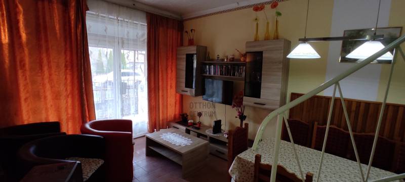 A Balatontól sétatávolságra csendes, rendezett utcában IKERFÉL nyaraló eladó!Az épület kivett hétvégi ház besorolású.Az ingatlan osztatlan közös telken, a másik féltől kerítéssel elválasztva helyezkedik el. A használati megosztásnak nincs akadálya, a másik tulajdonos beleegyezik.Az épület fűtéssel nem rendelkezik, de kémény van, így könnyedén kialakítható.A melegvíz ellátásról villanybojler gondoskodik.A ház téglából épült, palafedésű.A nyílászárók kétrétegű üveggel ellátott fémszerkezetűek.A bejáratnál nagyméretű teraszról lehet belépni az ingatlanba, ahol nappali, két hálószoba, konyha, fürdőszoba és külön wc található. Az emeleten három hálószoba (az egyik erkélyes) és egy fürdőszoba található.Az udvarban van egy garázs is, jelenleg tárolóként használják. A családi összejöveteleknek, szabadtéri sütögetéseknek kényelmes fedett kerti kiülő ad helyet.Balatonmáriafürdő a déli part egyik legkedveltebb települése köszönhetően a több kilométeres lassan mélyülő vizű partszakaszának, melyen több szabadstrand és a központi fizetős strand található.Kitűnő infrastruktúra, parti sétány, különféle üzletek teszik élvezetessé a nyaralást.Amennyiben lát fantáziát ebben az ingatlanban, kérem hívjon, nézzük meg közösen.