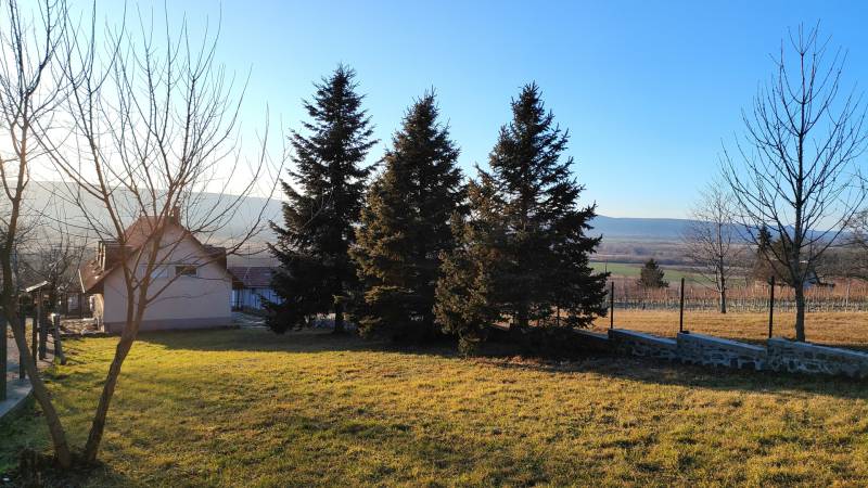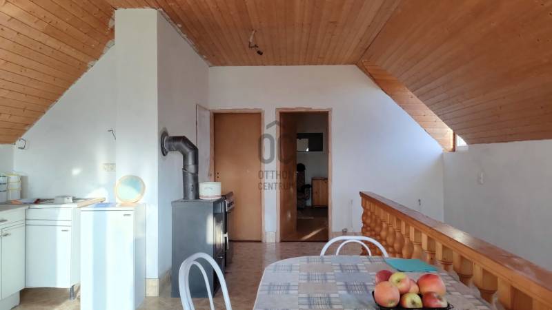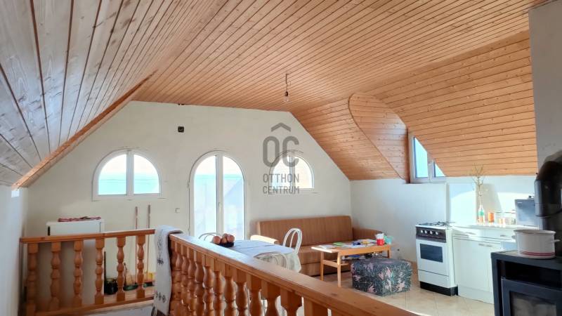 A Szent György-hegy az elmúlt években a Balaton-felvidék egyik legkeresettebb pontjává vált. Hegymagas kedvező fekvésének köszönhetően a környék csendje, a rendezett szőlősorok és a túraútvonalak közelsége egyszerre kínál nyugodt és aktív életmódot. A dűlőút végén fekvő telek már az érkezéskor is egyértelművé teszi, hogy itt a hegy természetes nyugalma a mindennapok része.Ezen a 2383 nm-es, gondozott, enyhén lejtős, szabályos négyszögalakú saroktelek alsó sarkán áll az 1998-ban a meglévő kőpincére téglából felépült ház. A napsugaras motívumú fa bejárati ajtók és a műanyag redőnyös ablakok egyszerre adnak karaktert és praktikumot az épületnek.Az egyik ajtó mögött a FÖLDSZINTI TÁROLÓHELYISÉG (12 m2) található, amelyből járólappal burkolt, részben csempézett 30 m2 nagyságú PINCE nyílik. A másik bejárati ajtón belépve márványlépcsősor vezet fel az EMELETre, ahol az AMERIKAI KONYHÁS NAPPALIba érkezünk. A tér megnyitása és a fény játéka miatt a 22 m2 nagyságú helyiség élénk és tágas, az ERKÉLYre (11m2) kilépve pedig kibontakozik az a részpanoráma, amely egyaránt mutatja a BALATON tükrét és a Keszthelyi-hegység vonulatait.KÉT HÁLÓSZOBA (10 m2, 11,5 m2) is helyet kapott ezen a szinten, mindkettő csendes, a hegy felé forduló hangulatú, valamint itt található a zuhanyzós FÜRDŐSZOBA is. A lépcsőház alatti térben további 2 kintről megközelíthető tárolóhelyiség kialakítására került sor.A ház műszaki adottságai rendezettek és praktikusak: vezetékes VÍZ és VILLANY áll rendelkezésre, a szennyvíz egy 7 m³-es, két tisztítónyílással ellátott DERÍTŐbe távozik. Az emeleti élettér fűtése jelenleg a nappaliban található KANDALLÓ segítségével megoldott, de a központi fűtés rendszere is kiépítésre került, így a későbbi korszerűsítés lehetősége adott.Az épület cseréphéjazata megbízható és időtálló látványt ad.A házban található belső ajtók cserére, a falak kifestésre várnak.Az ingatlan Hegymagas zártkerti részén fekszik, művelési ága: szőlő és gazdasági épület, út, így az adásvételi szerződést közzé kell tenni.Lokációja kiváló, autóval is minden évszakban könnyen megközelíthető.Ezt az ingatlant azok fogják igazán a magukénak érezni, akik keresik a természet közelségét, szeretik, ha otthonukból elindulva egy hosszabb túraösvény vagy egy csendes erdei út néhány perc alatt elérhetővé válik csakúgy, mint a település központja, boltja és a buszmegálló.Ideális választás lehet családoknak, akik nyaralót vagy hétvégi menedéket álmodnak a Balaton-felvidéken; természetkedvelőknek, akik értékelik a hegy csöndjét; vagy akár szálláshelyet kialakítani vágyóknak, akik a Szent György-hegyre érkező vendégeknek szeretnének egy különleges élményt nyújtani.Ha szeretné megtapasztalni a hegyoldal atmoszféráját, kérem, hívjon bizalommal, vagy jöjjön el és nézze meg személyesen a kedvező fekvésű ingatlant.