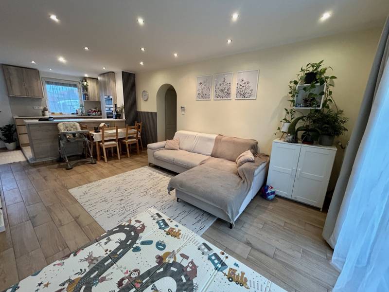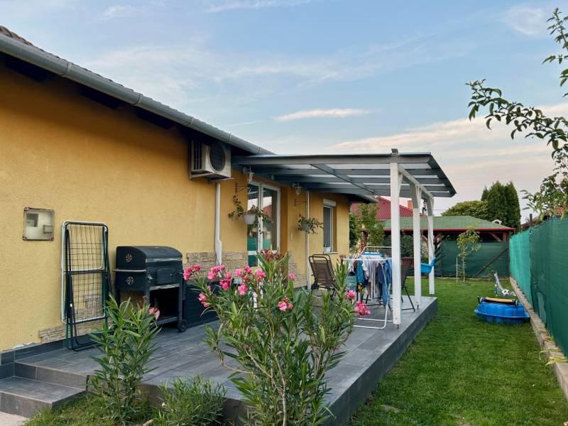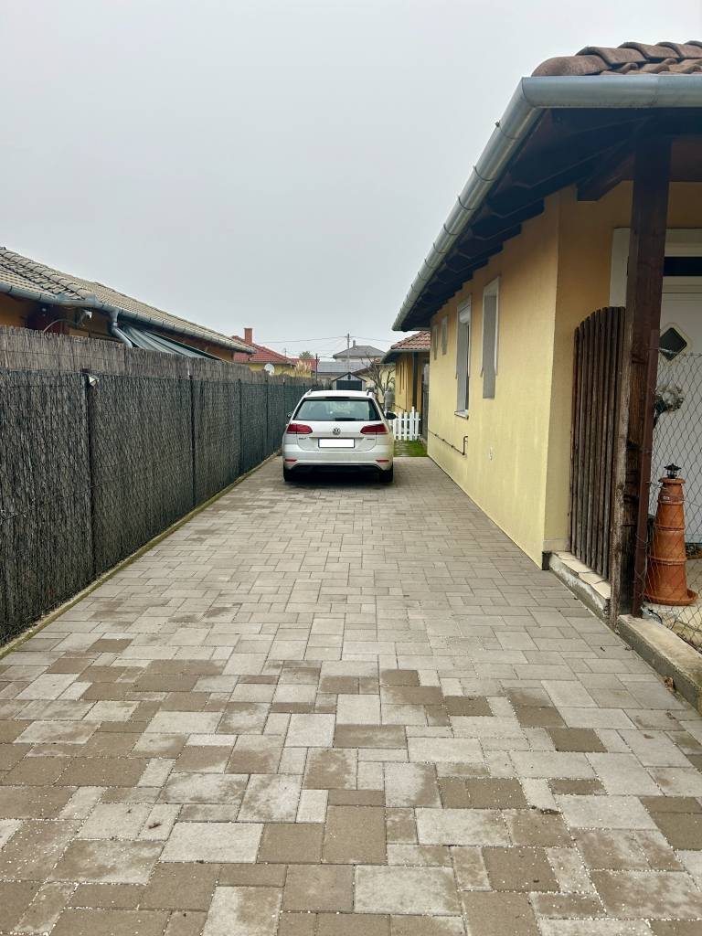 Csak a mi irodánk kínálatában elérhető ingatlan!Halásztelken újszerű és igényes ingatlanok szomszédságában, csendes kertvárosi övezetben, eladásra kínálok egy 2009-ben épült és 2023-ban esztétikailag felújított EGYSZINTES CSALÁDI HÁZAT.Az telken kettő egyszntes különálló ingatlan található, egymástól szeparált telekrészekkel.Az eladó ingatlan az utcáról nézve a telek hátsó részén helyezkedik el.Az ikerházi lakás nettó hasznos alapterülete 78,77 m² , jelenlegi kialakítása szerint amerikai konyhás nappali-étkezővel, 3 hálószoba, fürdőszoba, WC, terasz valamint egy kamra helyiséggel rendelkezik.Az ingatlan jogilag külön albetéttel (helyrajzi számmal) és társasházi alapító okirattal rendelkezik.Szerkezetileg 30-as téglából épült, 5 cm dryvit szigeteléssel, fűtése és a melegvíz új gáz kombi cirkóról megoldott, műanyag 2 rétegű hő és hangszigetelt nyílászárók.További információk: 1 db. inverteres Daikin klíma, redőny és szúnyoghálóval kiépítve, öntöző rendszer, fedett terasz, gépesített konyhával (az ár tartalmazza).Saját telekrésze 445 m² amely szépen parkosított, 3 db. kocsibeállási lehetőséggel, a kertben található egy kisház is amely kb. 5 m²-es.Tájolása: D-K-i, méretek és elrendezés az alaprajzon látható.Tömegközlekedés: kb. 10-12 perces sétára.Az ingatlan tehermentes, várható birtokba adás az adásvétel megkötésének napjától számított minimum 90 nap.Amennyiben Önnek a vásárláshoz szüksége lenne hitelre(OTTHON START), babaváró kölcsönre, stb., kezdeményezheti a kapcsolatfelvételt bankfüggetlen hitelügyintézőinkkel, teljesen DÍJMENTESEN.Az ingatlan részletes ismertetése és bemutatása, előre egyeztetett időpontban lehetséges, akár hétvégén is.Bővebb információkkal kapcsolatban várom jelentkezését, keressen bizalommal a hét minden napján!