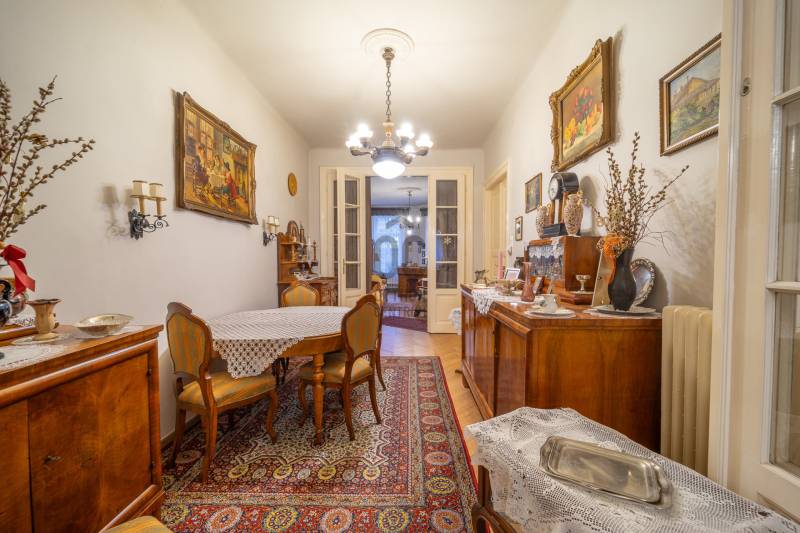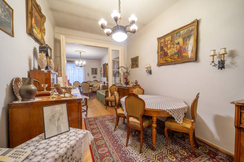 **Palotanegyed • Ahol a tereknek tartása van. A hangulatnak meg… vonzereje.**124 nm nagypolgári lakásVan lakás, ami szép.És van lakás, ami hat rád.Ez a 124 nm-es, 4 szobás + hallos nagypolgári otthon az utóbbi.Belépsz, és egyszerűen jól áll neked.A magas falak, a nagy terek, a régi parketta halk recsegése — mind azt a finom, kicsit titkos báli hangulatot hozzák, ami egyszerre elegáns és… igen, van benne valami ellenállhatatlan könnyedség.Az a fajta lakás, ahol a vendég belép és megáll:„Ez igen.”A Palotanegyed egyik legszebb részén vagyunk, egy sarokra a Múzeumkerttől.Itt még van ritmusa az utcáknak, a környéknek illata, a délutánoknak fénye.A lakás főbb erősségei:124 nm nagyvonalú, levegős tér4 szoba + tágas hall – minden szobának karaktere vanEredeti részletek, amik nem próbálnak meg tetszeni — egyszerűen vonzóakKiváló beosztás: családnak, otthonnak, elegáns irodánakNéhány perc séta a Múzeumkert és a kulturális negyed minden szépségeEz az a lakás, amit nem lehet elmesélni.Ezt érezni kell.A falaknak tartása van. A tereknek mélysége.És van benne valami, amit nem lehet tanítani:a régi Pest finoman sodró magabiztossága.Ha ezt keresed, itt lesz dolgotok egymással.