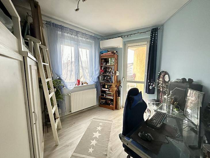 Vác kedvelt városrészében, Deákváron kínálunk eladásra egy világos és tágas, 2 és fél szobás lakást két erkéllyel, amely ideális választás lehet családoknak. A lakás a társasház 3. emeletén helyezkedik el, praktikus elosztással: előszoba, étkező, konyha, két külön nyíló szoba, valamint egy félszoba amiben egyedi tervezésű és kivitelezésű tágas galériaágy van, alul gardróbbal és a kisebb erkély tartozik hozzá. A nappaliból nyílik a nagyobb erkély, továbbá a lakás része egy fürdőszoba, külön WC és egy spejz is. A közművek (víz, villany, gáz) egyedi mérőórákkal rendelkeznek.Az északnyugati fekvésű lakás egész nap kellemesen világos. Fűtéséről kondenzációs cirkó gondoskodik, kiegészítve hűtő-fűtő klímával, a félszobában pedig infra padlófűtés növeli a komfortérzetet. A nyílászárók dupla üvegezésű, thermo műanyag ablakok, melyek jó hő- és hangszigetelést biztosítanak.A társasházhoz tartozik egy csak lakók által használható parkolórész, ami nagy előnyt jelent a mindennapokban. A lakástól mindössze 5 perc sétára bolt és buszmegálló is található, ahonnan a belváros gyorsan és kényelmesen megközelíthető.Kérdésével, illetve megtekintési szándékával keresse irodánkat. Hitelre lenne szüksége új otthonának megvásárlásához, profi hitelközvetítő kollegáink állnak rendelkezésükre.Amennyiben eladásra lenne szükségük a vásárláshoz, irodánk egész Vác területén ingyenes értékbecslést vállal.