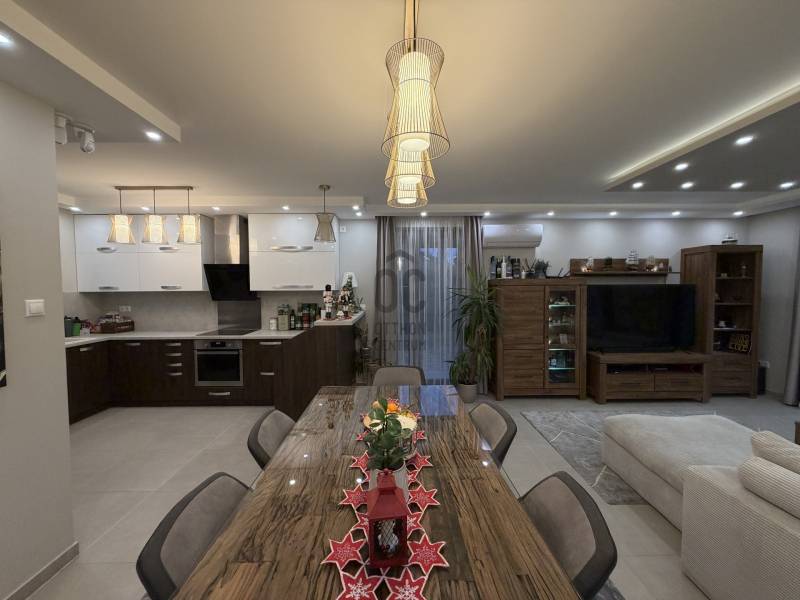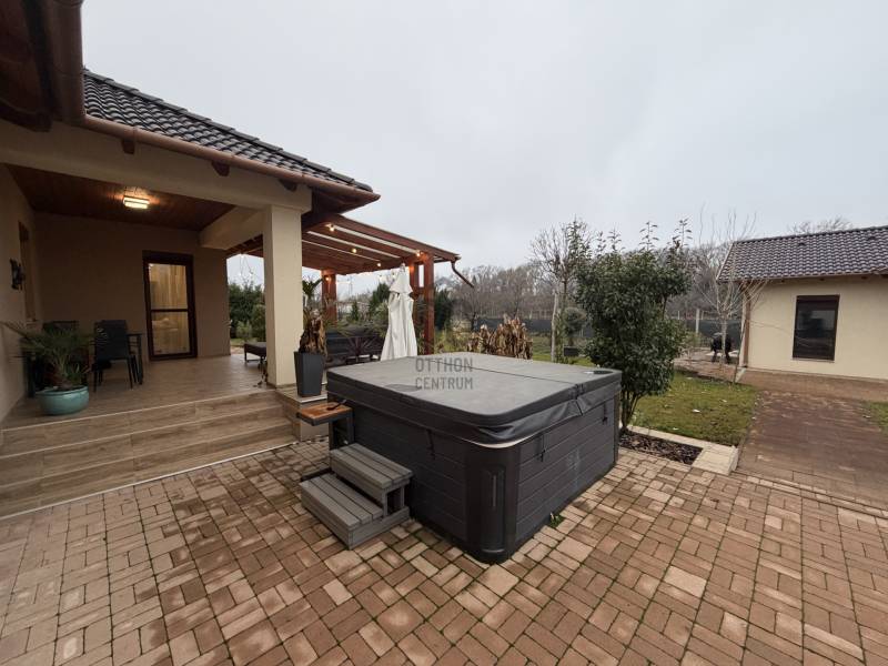 Fiatalok figyelem: Kadafalva és Ballószög között, ÚJ ÉPÍTÉSŰ övezetben, 1492 nm-es telken eladó egy 2018-ban épült, MODERN, TÁGAS családi ház és egy külön, összkomfortos, önálló épület. A főépület nettó 105 nm: amerikai konyhás nappali, 3 szoba + gardrób, fürdőszoba, külön WC, spájz és előszoba. A mindennapi KÉNYELEM része a 25 nm-es FEDETT TERASZ és a 41 nm-es DUPLA GARÁZS.Az udvarban egy 38 nm-es, ÚJ építésű, ÖNÁLLÓ LAKÓÉPÜLET található saját autóbeállóval és utcára nyíló kapuval – igény esetén TELJESEN LEVÁLASZTHATÓ. Ez FIATALOKNAK praktikus megoldás a külön élettérre vagy rugalmas hasznosításra.Műszaki tartalom: ENERGIAHATÉKONY megoldások kondenzációs kazánnal és PADLÓFŰTÉSSEL, 30-as tégla falazat, 15 cm homlokzati hőszigetelés, szórt födémszigetelés, 3 RÉTEGŰ NYÍLÁSZÁRÓK ELEKTROMOS REDŐNNYEL. Extra felszereltség: Paradox riasztórendszer TÁVOLI ELÉRÉSSEL (BIZTONSÁG), ELEKTROMOS KAPU és garázsajtók, öntözőrendszer FÚRT KÚTRÓL, 2 kerti csap kútról és 2 kerti csap városi vízről, közel 250 nm TÉRKŐ.Infrastruktúra: aszfaltos út 90 méterre; az utca hamarosan CSATORNÁVAL és SZILÁRD BURKOLATTAL rendelkezik.Fiatal korosztály számára PRAKTIKUS elrendezés, korszerű gépészet és NAGY TELEK egy helyen.Megtekintés előre egyeztetett időpontban.