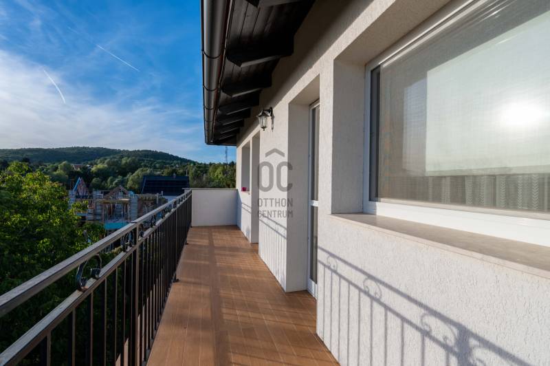 A Budai-hegység ölelésében, Nagykovácsi egyik legexkluzívabb, természetközeli részén, a Kültelek utcában kínálunk megvételre egy ritkaságszámba menő, 2018-ban épült, háromszintes, 8 szobás, panorámás családi rezidenciát. Az ingatlan egy intim, 1007 m²-es délnyugati fekvésű telken helyezkedik el, ahonnan lélegzetelállító kilátás nyílik a városi sziluettre és a környező zöld dombokra. A ház két utcáról is megközelíthető – az egyik oldalon aszfaltozott út, a másikon csupán 50 méteres, gondozott murvás szakasz vezet fel.A rezidencia tégla falazattal, gondosan megválogatott, időtálló építőanyagokkal és modern műszaki tartalommal készült. A padló- és radiátoros fűtésrendszerrel kombinált gázcirkó, valamint nagycsaládos igényeket is kiszolgáló vízmelegítővel. Az ingatlan kifogástalan állapotú, esztétikailag és műszakilag egyaránt prémium színvonalat képvisel.Letisztult elegancia három szinten – gondosan megtervezett élettérAlagsor – wellness és privát rekreációraA ház alsó szintje a kikapcsolódásnak és a praktikumoknak szentelt:- Prémium szauna külön zuhanyzóval- Pihenésre alkalmas lakótér (25 m²), akár vendégszobaként, akár edzőhelyként- Tágas raktár (20 m²), igényes gépészeti helyiség- Közvetlen kapcsolat a 27 m²-es terasszal, ahonnan a kert nyugalma tárul fel.- Ez a szint tökéletesen működik privát wellnessrészlegként vagy önálló vendéglakrészként.Földszint – a rezidencia reprezentatív központja.A földszinten a nagyvonalú terek, a fény és a panoráma dominálnak:- Fényárban úszó nappali közvetlen teraszkijárattal- Tágas étkező és modern, praktikusan kialakított konyha kamrával- Különálló vendégszoba és vendégmosdó- Privát hálószoba saját gardróbbal és fürdőszobával- Külön dolgozószoba, amely otthoni irodának vagy könyvtárnak is ideális- A ház egyik legszebb eleme a 38 m²-es panorámás terasz, amely a nappali és az étkező együttes meghosszabbítása – tökéletes helyszín reggeli kávéhoz vagy esti borozáshoz- A földszint eleganciája és funkcionalitása egyaránt a modern családi életet szolgálja.Emelet – privát lakosztály a nyugalom jegyébenA felső szint a ház privát, pihenésre kialakított szférája:- Két impozáns méretű hálószoba- Stílusos, külön fürdőszoba- 12 m²-es erkély, amely a hálókból közvetlenül elérhető és páratlan panorámát biztosít- Ez a szint külön lakrésznek is tökéletes, ideális szülői lakosztálynak vagy idősebb gyermekek számára.Ahol a természet és a luxus harmonizál:1000 m²-es, intim, délnyugati fekvésű kert állandó napsütést, teljes privát szférát és kivételes panorámát kínál. A telken két nyitott gépkocsi-beálló biztosítja a kényelmes parkolást.Nagykovácsi a főváros egyik legértékesebb agglomerációs települése:- magas életminőséggel, kiváló levegővel, világszínvonalú oktatási intézményekkel (köztük az Amerikai Nemzetközi Iskolával), közvetlenül a Budai Tájvédelmi Körzet szomszédságában.- Nagykovácsi ötvözi a természet közelségét a modern, családbarát infrastruktúrával.Ez az ingatlan nem csupán egy ház – inkább egy életérzés!Foglaljon időpontot telefonon a megtekintésre – engedje, hogy ez a különleges rezidencia személyesen is elvarázsolja.Hitelezési Szakértőnk egyetlen lépésben bemutatja Önnek az összes pénzintézet ajánlatát - így elkerülheti a hosszadalmas és felesleges banki látogatásokat – gyorsan, hatékonyan és a legjobb döntést biztosítva Önnek.Ez az ingatlan a \"Felező csomag\" megbízási portfólióhoz tartozik. Részletek az Otthon Centrum weboldalán.