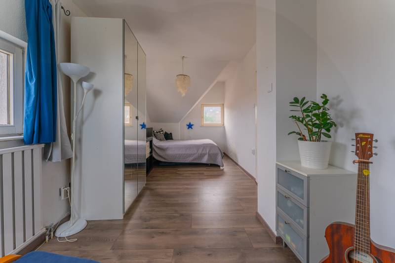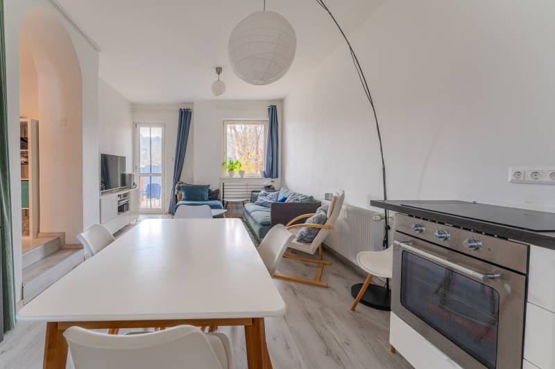 KIVÁLÓ BEOSZTÁS – KERTKAPCSOLAT - ÖRÖKPANORÁMA(Ezt az ingatlant kizárólag irodánk kínálatában találja meg!)Békásmegyer-Ófalu csendes kis mellékutcájában, 341 nm-telken kínáljuk eladásra ezt az 1990-ben épült, háromszintes, 160 négyzetméter lakóterülettel rendelkező, duplakomfortos, igazán barátságos ikerházat, saját kertrésszel, terasszal, örökpanorámával.A lakóépület épületszerkezetileg teljesen független az ikerszomszédtól, önálló falazattal és külön telekrésszel rendelkezik, ami valódi családi ház érzetet biztosít. Az ingatlan saját közműmérő órákkal felszerelt, ennek köszönhetően az ingatlan hitelezhető, banki finanszírozás is igénybe vehető.Az ingatlan 2022-ben korszerűsítésen esett át, ekkor a konyha, a két fürdőszoba és a mosókonyha teljes felújítása megtörtént, illetve az ingatlanban a teljes villamos hálózat cseréje megtörtént, 3*16A lett kiépítve.A középső és felső szinten minden helyiségben új burkolat lett letéve.Az ingatlan helyiséglistája a fotók között található. Összesen 183,71 nm, melyből 137,22 nm teljes egészében lakó tér, 46,49 nm szuterén, mely területet felével lett feltüntetve a hirdetés össz négyzetméter adataiban.A ház három szinten helyezkedik el, a telek lejtésének köszönhetően az alsó és a középső szint is közvetlen kertkapcsolattal rendelkezik, ami ritka és rendkívül praktikus megoldás.A középső szinten helyezkedik el a D-NY-i fekvésének köszönhetően a napfényes, amerikai konyhás nappali, ahonnan az igazán hangulatos terasz, gyönyörű kilátással, mely közvetlen kapcsolatot teremt a kerttel – tökéletes helyszín reggelikhez, baráti összejövetelekhez vagy esti pihenéshez. Emellett még ezen a szinten található egy nagy méretű hálószoba ami igény szerint kettéválasztható, szintén van egy kijárat a teraszra és egy fürdőszoba.A legfelső, tetőtéri szinten három külön nyíló hálószoba került kialakításra, a szintet pedig egy tágas, dupla mosdós fürdőszoba egészíti ki, amely a mindennapi használat mellett a családi komfortot is maximálisan szolgálja.Az ingatlan különleges adottsága, hogy minden szobából örökpanorámás kilátás nyílik, amely a Megyeri hídtól egészen a Rókahegy lankáiig tárul fel.Az udvarban akár három autó kényelmes parkolására is van lehetőség úgy, hogy a felső kertrész és terasz teljes értékű zöld marad.Az ingatlan kiváló infrastruktúrával rendelkezik, a belváros gyorsan és kényelmesen elérhető. A 243-as buszmegálló mindössze három perc sétára található, ahonnan HÉV-vel körülbelül 15 perc alatt elérhető a belváros.A közelben üzletek, orvosi rendelő, óvoda és iskola is elérhető.Természetközeli környezet: A környék számos kirándulóhelyet kínál, a Duna-part és erdei ösvények könnyen elérhetők.Ez az ingatlan ideális választás mindazoknak, akik szeretnének közel maradni a városhoz, de értékelik a természet közelségét, a nyugalmat és a tágas, családbarát életteret.Ha szimpatikusak az Ön számára a leírtak és szívesen megnézné, esetleg valamire nem kapott választ és kérdése van, keressen bizalommal elérhetőségeimen, akár hétvégén is!Díjmentes, banksemleges hiteltanácsadót és a vásárlás zökkenőmentes lebonyolításához korrekt, kedvező áron dolgozó ingatlan szakjogászt biztosítunk!