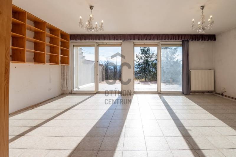 A Remetehegy egyik csendes, zöldövezeti utcájában, a Bercsènyi utcában kínálunk megvételre egy ÖRÖK PANORÁMÁS, 155 m²-es, 4 szobás, felújítandó ikerházi ingatlant, 375 m2-es telekkel. A ház déli tájolásának köszönhetően rendkívül világos, a nappaliból, az ERKÉLYRŐL és a 60 m2-és tágas TERASZRÓL gyönyörű budai panoráma tárul elénk.A HÁZ FŐBB JELLEMZŐI:•155 m² lakótér + 33 m² beépíthető tetőtér – további bővítési lehetőség•4 jól használható szoba, praktikus elosztás•Tágas, napfényes nappali nagy üvegfelületekkel•KÉTÁLLÁSOS GARÁZS, mögötte 7,5 m² tároló•Déli tájolás, egész nap világos terek•Nagy terasz és erkély csodálatos budai kilátással•Nyílászárók: műanyag•Fűtés: cirkó•Állapot: felújítandó, így a ház teljes mértékben a saját igényeid szerint alakíthatóAz ingatlan kiváló alapot kínál mindazok számára, akik modern, tágas, panorámás otthont szeretnének kialakítani Budapest egyik legkedveltebb zöldövezeti részén.LOKÁCIÓ:A környék infrastruktúrája kiváló, ugyanakkor nyugodt, családias környezetet biztosít.•Hűvösvölgy központja 5 perc autóval, busszal mindössze néhány megálló•A legközelebbi buszmegálló: Kossuth L. utca, kb. 5 perc séta•Hűvösvölgy központjában minden megtalálható, ami a mindennapokhoz szükséges(üzletek, gyógyszertár, rendelők, szolgáltatások stb.)Egyedi igényekre szabott lakáshitelekkel állunk rendelkezésére.Bankfüggetlen hitelcentrumunk az országban elérhető összes bank és hitelintézet ajánlatát versenyezteti az Ön számára díjmentesen.Munkatársaink nagy szakmai tapasztalattal várják Önt az előre egyeztetett időpontban akár a normál munkaidő után is.