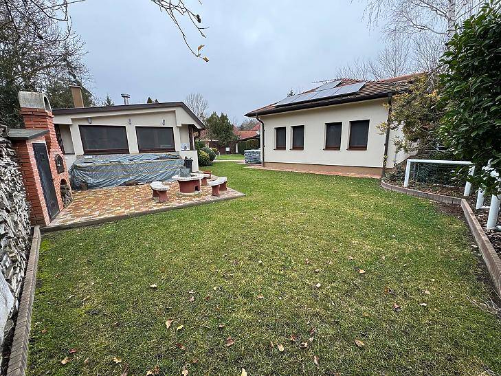 ÜRÖMÖN, A VÖLGYLIGETBEN ELADÓ EGY KIVÉTELES, TELJES KÖRŰEN FELÚJÍTOTT, FÖLDSZINTES CSALÁDI HÁZ!Telek mérete: 920 nmA KÖRNYÉKBudapest közvetlen határában, kiváló adottságokkal rendelkező, igényes családi házas övezetben található. Fiatalos környezet, tágas, karbantartott utcák, kedves és összetartó lakóközösség jellemzi.A buszmegálló 8 perc (550 m), a vasútállomás 11 perc (750 m) sétára érhető el. Az ürömi Lidl autóval 4 perc, gyalogosan kb. 12 perc.A HÁZ JELLEMZŐI-A telken két épület található: Főépület: 168,28 nm Kisház: 44,62 nm-Plusz 17,48 nm-es fedett terasz-Plusz dupla beállásos, fedett kocsibeállóFŐÉPÜLET-2000-ben épült, 38 cm vastag POROTHERM téglából, 10 cm-es Dryvit szigeteléssel-2021-ben teljes körű felújításon esett át-Kerámiacseréppel fedett tető, monolit vasbeton födém 15 cm szigeteléssel-Előkészítve egy további szint ráépítésére-3 rétegű műanyag nyílászárók, kívül-belül fahatású kivitelben-Szúnyoghálóval és elektromos redőnnyel felszerelve-Fűtés: tartályos, kondenzációs kombi kazán-Padlófűtés, a szobákban radiátorok-1 db 5,3 kW-os LG inverteres klíma + 2 db Daikin klíma-47 db napelem, melyek fedezik az ingatlan teljes áramfogyasztását, valamint 2 elektromos autó töltését-Kamerás kaputelefon, infraérzékelők, éjjellátó kamerás riasztórendszer-A vizes helyiségekben mozgásérzékelős üvegajtók-Szülői hálószoba saját gardróbbal és fürdőszobával-Plafonba épített hangrendszer-A nappali nagy tolóajtóval rendelkezik, közvetlen kertkapcsolattalKISHÁZ (44,62 nm)-2000-ben épült, 38 cm vastag POROTHERM téglából, 10 cm Dryvit szigeteléssel-2022-ben teljes körű felújításon esett át-Fűtés: kondenzációs kombi kazán-4 személyes finn- és infra szauna-3 rétegű, kívül-belül fahatású műanyag nyílászárók-Központi Daikin klímarendszerKERT-2 db fúrt kút-Kiépített öntözőrendszer-7 × 4 méteres, 140–150 cm mély medence-Jakuzzi-Épített kemence, sütögető és kerti konyhaA ház kizárólag a teljes berendezéssel együtt vásárolható meg, melynek ára: 30 millió forint.FINANSZÍROZÁSAz ingatlan tehermentes, banki finanszírozással is megvásárolható. Irodánk ingyenes hiteltanácsadással áll rendelkezésre.Vevőink részére a közvetítés díjmentes!A hirdetésben szereplő adatok tájékoztató jellegűek.