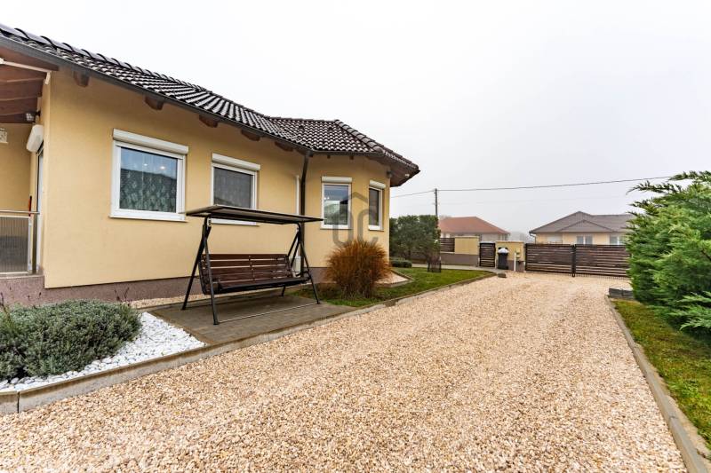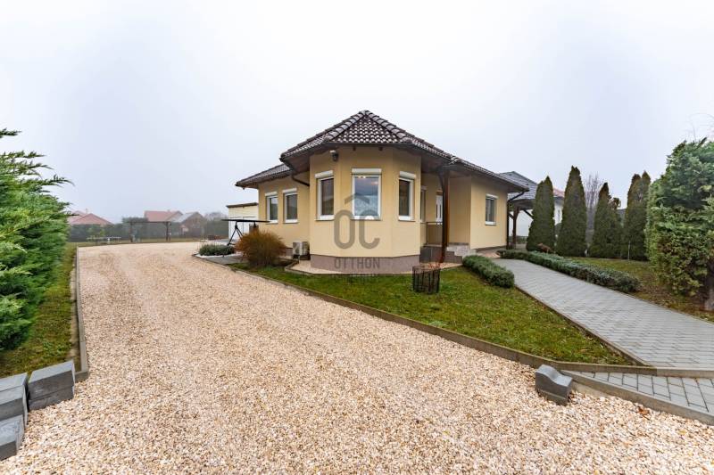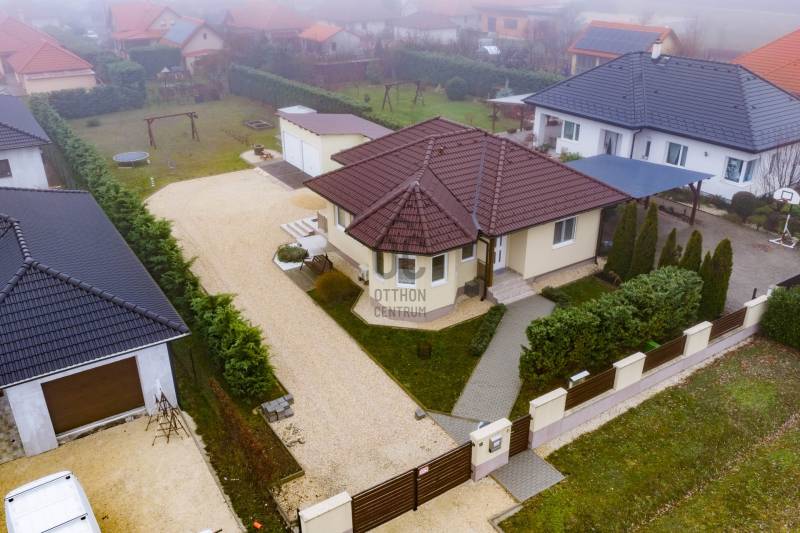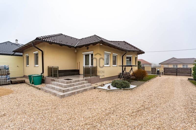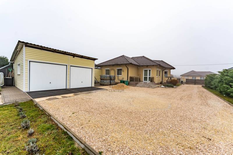 Az ingatlanról videót is készítettünk, tekintse meg weboldalunkon, a H511254 regisztrációs számra keresve!A falazat könnyűszerkezetes, készház technológiával készült, mely számos előnnyel rendelkezik:-kiemelkedő hő- és hangszigetelés, így rendkívül kedvező rezsiköltséggel működtethető,-a külső és belső falakban nagy térfogatsűrűségű (50–60 kg/m³) farostszigetelés található,-rétegrend: 5,5 mm Baumit vakolat + 60 mm vakolható farostszigetelés + 160 mm KVH fa tartóváz + 160 mm cellulóz szigetelés + 15 mm építőlemez + 40 mm belső lécváz + 12,5 mm gipszkarton,-valamint kiváló tűzvédelemmel is rendelkezik.Az ingatlan főbb jellemzői:-3 rétegű műanyag ablakok, redőnnyel és szúnyoghálóval felszerelve,-fűtés gázkazánról működik – a közlekedőben, fürdőszobában, WC-ben padlófűtés, a többi helyiségben radiátoros hőleadás,-helyiségek: 3 hálószoba, nappali, tágas konyha–étkező, WC-kézmosó, fürdőszoba,-a nappaliból közvetlen kijárat nyílik a teraszra,-az udvaron dupla beállásos garázs és egy tágas tároló is megtalálható,-nagy, sík telek – medence, játszótér vagy kerti pihenő könnyedén kialakítható,-kiváló elosztású, praktikus és élhető otthon, ideális választás családosok számára.Elhelyezkedés:Márkó mindössze 5 perc autóútra van Veszprémtől. A településen megtalálható óvoda, étterem, kisboltok, posta, gyógyszertár és orvosi rendelő – minden adott a kényelmes mindennapokhoz.Bővebb információkért és megtekintésért, keressen bizalommal!BANKFÜGGETLEN hitelben és teljes körű ügyintézésben segítünk!