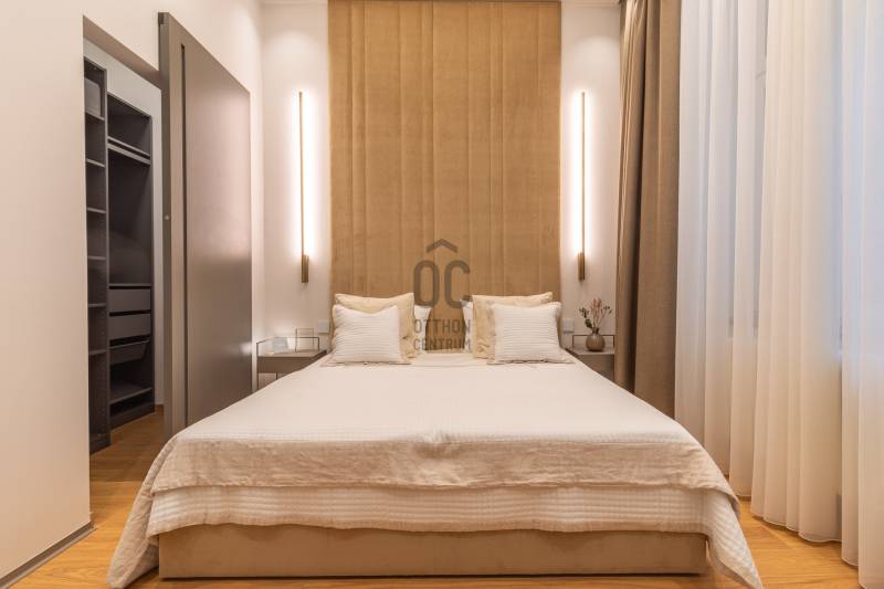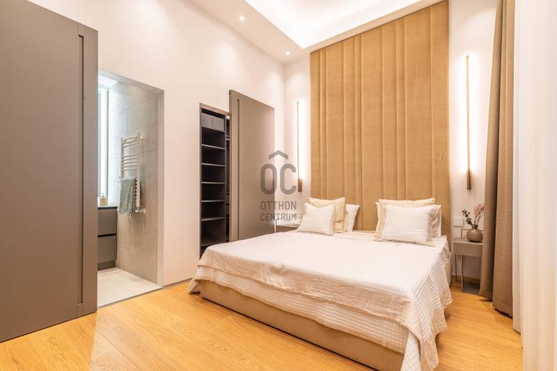 A 96 m²-es, tökéletes arányú, magas minőségben kivitelezett luxuslakásban három elegáns hálószoba, három fürdőszoba, valamint egy külön vendégmosdó kínálja a kényelmet.Minden részletében érződik az időtálló anyagok ereje, és az a harmónia, amelyet csak igazán átgondolt terek tudnak megteremteni.A bejárat előtt egy privát, zárható rész fogadja az érkezőt – egy intim kültéri tér, amely teraszként funkcionál, és már az ajtó előtt megadja a lakás exkluzív, külön világát.Belépni ide olyan érzés, mintha egy modern műalkotásba lépnénk:a fény, a formák, a textúrák és a légies elegancia egyszerre teremtik meg azt a különleges atmoszférát, amelyet nem lehet mással összetéveszteni. - Üdv itthon!MŰALKOTÁS A TÉR FELETT – MODERN KÉNYELEM ÉS FINOM ELEGANCIAEz a lakás nem egyszerű felújítást kapott – teljes átalakuláson ment keresztül, amely során minden centimétert újragondoltak.A modern technológia, a minőségi anyaghasználat és az időtálló elegancia találkozása olyan harmonikus egységet hozott létre, amely tiszteletben tartja a klasszikus épület karakterét, mégis egy letisztult, kortárs otthont eredményez.A 32 m²-es amerikai konyhás nappali a lakás központi tere, ahonnan az étkező íves ablakai gyönyörű fényívet hoznak létre.Nappal természetes fényben fürdik a helyiség, este pedig meghitt hangulatot kölcsönöz – egy olyan tér, amely minden élethelyzethez alkalmazkodni tud.HÁLÓSZUITEK – FUNKCIONÁLISAN ÁTGONDOLT, PRIVÁT TEREK• Szülői lakosztály Tágas, különálló élettér saját fürdőszobával és gardróbbal, amely teljes nyugalmat és intimitást biztosít a mindennapokhoz.• Gyermeklakosztályok A lakás két gyerekszobával rendelkezik, mindegyik saját funkcionális háttérrel: az egyik gyerekszoba önálló lakrész, zuhanyzós fürdővel és gardróbbal, a másik gyerekszoba egy külön, kádas fürdőszobához kapcsolódik.EGYEDI TERVEZÉS ÉS PRÉMIUM ANYAGOKA lakás minden helyiségében egyedileg gyártott beépített bútorok találhatók, a belsőépítész tervei alapján kialakítva.A részletekben rejlő harmónia – textúrák, formák, világítások – egy modern, mégis lélekkel teli otthont hoz létre.Konyha – funkció és design találkozásaA konyha prémium minőségű beépített gépekkel felszerelt - Bosch készülékekkel, és végig a belsőépítész által megtervezett, egyedi konyhabútorral.Olasz nosztalgia radiátorok - Különleges esztétikai elemként, mégis praktikus funkcióval, a tér elegáns karakterét erősítik.OKOS OTTHON – KÉNYELEM A MINDENNAPOKBANA lakás modern technológiai rendszereinek köszönhetően teljeskörűen okosotthonként működik:- távolról vezérelhető fűtés,- telefonról irányítható világítás,- integrált okosotthon-vezérlés,- hangtechnika minden szobában,- modern riasztórendszer a maximális biztonságért.A technológia diszkréten simul bele a terekbe, miközben a kényelmet és az élményt napról napra fokozza.ÉPÜLETA lakás egy 1900 körül épült, történelmi hangulatú, szépen megőrzött polgári ház első emeletén található.Az épület rendezett, lifttel felszerelt, tiszta, pénzügyileg stabil, és a meglévő megtakarításoknak köszönhetően folyamatosan karbantartott.A közös költség 24.000 Ft/hó, amely a szokásos üzemeltetési díjakat tartalmazza.Minden közmű (víz, villany, gáz) egyedi mérőórák alapján fizetendő.Parkolás a környéken közterületen lehetséges, bejelentett lakosok számára kedvezményes parkolási engedéllyel.A közelben több helyen is van garázsbérlési lehetőség, ami tovább növeli a mindennapi kényelmet.LOKÁCIÓMiért érdemes ide költöznöd vagy itt befektetned?- Budapest egyik legkarakteresebb városrésze – Belső-Ferencváros a maga történelmi utcavonalaival, felújított házaival és modern városi hangulatával különleges elegyet alkot.- A környezet egyszerre életteli és megnyugtató: hangulatos kávézók, díjnyertes éttermek, galériák és kreatív terek szegélyezik a környéket.- Pár perc séta a Ráday utca, amely ma Budapest egyik legnépszerűbb gasztrokultúrája – teraszos éttermek, kávézók, borbárok sorakoznak egymás mellett.- A Kálvin tér és a környező egyetemek közelsége (ELTE, BME, Károli) pezsgő, mégis kulturált városi életet biztosít.- Mindössze néhány percre található a Fővám tér, a Duna-part és a Vásárcsarnok – ahol friss alapanyagok, különleges piac hangulat és valódi városi energia vár.- A közlekedés elsőrangú: M3 és M4 metró, számos buszjárat, villamosvonal és a belváros minden pontja könnyen elérhető.- A környék teljes infrastruktúrával rendelkezik: üzletek, gyógyszertár, bankok, fitnesztermek, szolgáltatások karnyújtásnyira.- Kulturális értékben rendkívül gazdag térség – könyvtárak, egyetemek, színházak, galériák, koncerthelyszínek mind a közelben.- Kikapcsolódási lehetőségek egész sora: esti Duna-parti séta, brunch a környék újhullámos kávézóiban, vagy vacsora Budapest egyik kedvenc gourmet negyedében.- A legközelebbi bevásárlóközpontok, mint a Corvin Plaza vagy a Westend, néhány megállóra elérhetők.A környék összességében biztonságos, modern és barátságos – olyan élettér, ahol a mindennapok minősége új szintre emelkedik, legyen szó saját otthonról vagy prémium befektetésről.Engedd, hogy személyesen is átjárjon a hely hangulata – várom hívásod!----------------------------------------------Díjmentes, bankfüggetlen hiteltanácsadással támogatjuk vevő ügyfeleinket a számukra legelőnyösebb finanszírozási döntések meghozatalában. Opcionálisan igénybe vehető kiegészítő szolgáltatásainkkal – mint ügyvédi közreműködés, energetikai tanúsítvány vagy villamos biztonsági felülvizsg