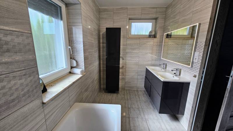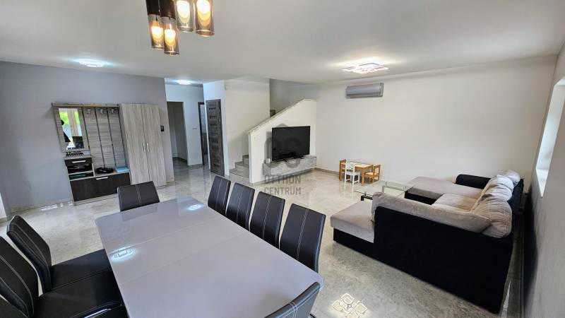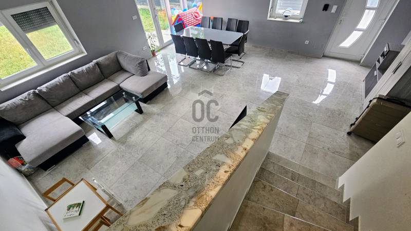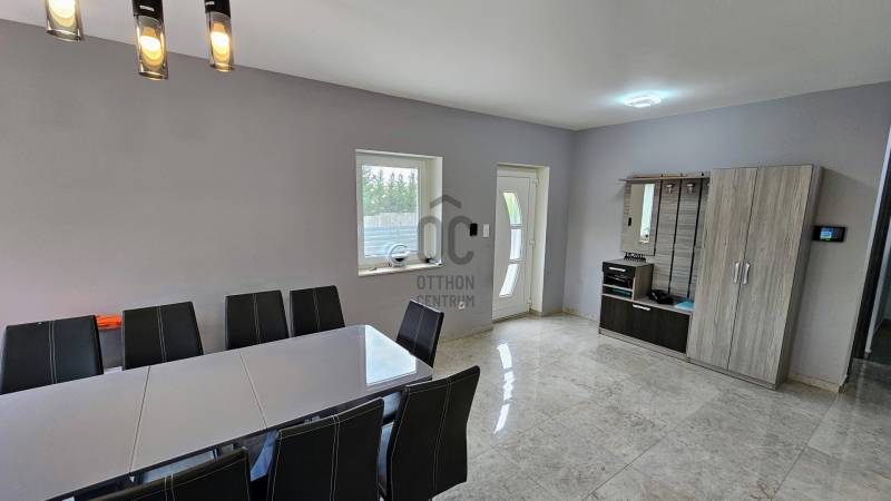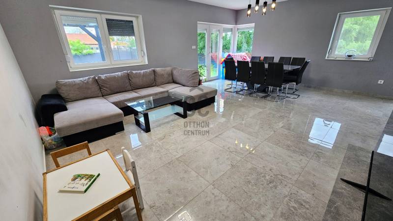 MODERN OTTHON DUNAHARASZTIN – ahol a kényelem és a stílus találkozik!Egy mindössze 1 éves, exkluzív, 5 szobás családi ház várja új tulajdonosát Dunaharaszti egyik csendes, megújuló részén.Ha elegáns, korszerű és energiatakarékos otthont keres, itt minden adott, hogy jól érezze magát!Főbb jellemzők:- 174 m² lakótér + 650 m² saját kert- 5 szoba – 2 fürdőszoba – 2 autóbeálló- Tágas, napfényes nappali (45 m²) a családi pillanatokhoz- Modern konyha és étkező (35 m²) – a tervek szerint garázs volt de praktikus élettérként funkcionál- Az iker féllel csak a garázsnál kapcsolódik- Minőségi burkolatok- Riasztó- és kamerarendszer kiépítveEnergiahatékony kialakítás:-30-as tégla, 10 cm külső és 25 cm födémszigetelés- 3 rétegű műanyag nyílászárók redőnnyel és szúnyoghálóval- gáz cirkó fűtés radiátor + padlófűtés kombinációval- 3 kW napelem a fenntartható működésért- betoncserép fedés – időtálló és elegáns megoldásMiért különleges ez az otthon?✅ Újszerű, gondosan kivitelezett épület✅ Kényelmes, világos, tágas terek és nagy kert✅ Nyugodt, családbarát környék✅ Kiváló közlekedés Budapest felé✅ CSOK és Otthon Start hitel igénybe vehetőA ház építője megbízható, helyben ismert kivitelező, számos sikeres referenciával.A környéken iskolák, óvodák, boltok és minden, ami a mindennapokat kényelmessé teszi.Ne maradjon le erről a ritka lehetőségről!Ez a ház tökéletes választás mindazoknak, akik modern, energiatakarékos és nyugodt otthonra vágynak Dunaharaszti szívében.Érdeklődjön még ma, és találja meg álmai otthonát!