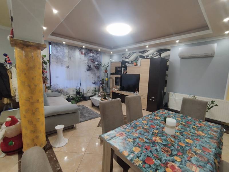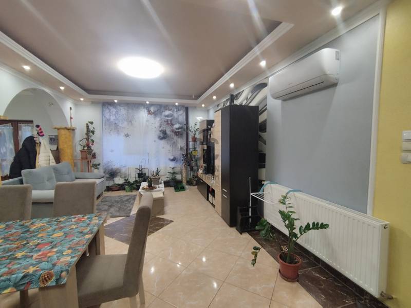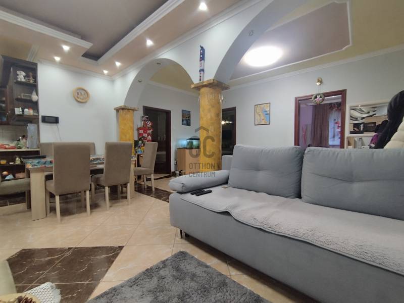 Eladásra kínálok Nyársapát csendes részén egy szerkezetileg jól megépített, felújított családi házat!Az ingatlan téglából épült 1970-ben, és 1217 m² telken helyezkedik el.Az épület 2024-ben teljes körű felújítást kapott, melynek során kicserélték a teljes villany hálózatot, új burkolatokat kaptak a helyiségek. A nappaliban egy 5.3 kw inverteres, hűtő-fűtő funkcióval ellátott klíma biztosítja a kellemes hőmérsékletet.Új bejárati ajtó, és új műanyag nyílászárók kerültek behelyezésre az utcafront felöli szobáknál. A nappaliban régi de jó állapotú fa nyílászáró található, az ablakok redőnyösek.A korszerűsítés során új fűtésrendszert alakítottak ki.HASZNOS LAKÓTÉR 113 m²- kettő külön nyíló szoba- nappali- konyha+étkező- fürdőszoba+WC- előszobaA főépületből átjárható a kazánház, ahol egy WC+kézmosó is kialakításra került. Az ingatlanhoz tartozik egy 50 m² dupla garázs, ahonnan a kazánházon keresztül a konyha könnyen megközelíthető.A szépen gondozott, rendezett telken egy hangulatos kis tó, fúrt kút, az udvar hátsó részén ólak, és tárolók találhatóak.INGATLAN ELHELYEZKEDÉSEIskola, élelmiszerbolt, Polgármesteri Hivatal, Művelődési központ, pizzéria 500 méteren belül, gyalogosan is könnyen megközelíthető.MIÉRT AJÁNLOM A FIGYELMÉBE?- nem kell a felújítással bajlódnia- jelenlegi állapotában azonnal költözhető- alapvetően csendes, nyugodt, szép környéken helyezkedik el, zöldövezet mellett- per- és tehermentes ingatlanAmennyiben megtetszett Önnek ez a harmonikus családi ház, várom megtisztelő hívását az ország legismertebb ingatlanközvetítő hálózat tagjaként. Elérhető vagyok a hét minden napján.Érdemes tudni, hogy az Otthon Centrum több banknak is az egyik legnagyobb ügyfele, ezért nálunk kedvezőbb konstrukciókkal tud lakáshitelhez jutni, rövidebb időn belül! A hitelközvetítésünk ingyenes!#Nyársapát #kettőszoba+nappali #központifűtés #113m² #klíma #duplagarázs #téglaEz az ingatlan a \"Felező csomag\" megbízási portfólióhoz tartozik. Részletek az Otthon Centrum weboldalán.