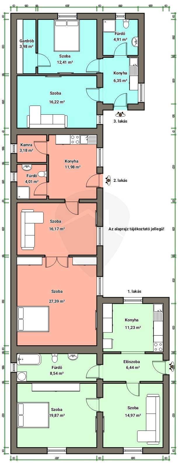 BEFEKTETŐK FIGYELEM!!! *** 2 db lakás vételáráért cserébe 3 db LAKÁST KAP! *** Hatvan város KÖZPONTJÁBAN eladó egy saját 454 m2-es telken elhelyezkedő, 3 db külön helyrajzi számon nyilvántartott lakás, amelyek alapterülete összesen nettó 151m2. Az ingatlanok megvásárlása kizárólag egyben lehetséges a telekkel együtt. A teljes közmű hálózat be van vezetve az ingatlanokba. Az épület külső állapota felújítása került, illetve a 2. lakás szintén teljeskörű felújításon esett át! Az udvarban található minden lakáshoz külön tároló is.1. Lakás 51 m2 - Átlagos állapotú, utca fronti kilátással rendelkezik. (2szoba, előszoba, fürdő, konyha helyiségekből áll)2. Lakás 59m2 - Felújított állapotú, belső udvarra néznek az ablakai. (2szoba, fürdő, konyha, kamra helyiségekből áll) - Gépészet, burkolatok, fürdőszoba, minden új3. Lakás 41m2 - Felújítandó állapotú, belső udvarra néznek az ablakai. (2szoba, fürdő, konyha, kamra helyiségekből áll)Hosszú távon JÖVEDELMEZŐ és ÉRTÉKÁLLÓ BEFEKTETÉSNEK számít, köszönhetően a központi elhelyezkedésnek, illetve a 3 db külön bejáratú lakásnak, amelyek könnyen bérbe adhatóak ezáltal! Becsült bérleti díj egy évre kb. 5-6 millió Ft között várható. 3. lakás felújítási költségét is beleszámolva kb. 7-8% hozamnak felel meg!További információért hívjon bizalommal!