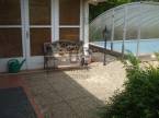 Megvételre kínálunk egy 5szobás részben felújított családi házat, ahol a hagyományos építés és a modern megoldások tökéletes összhangban találkoznak.Főbb Jellemzők:Masszív Szerkezet: Az eredeti házrész 50 cm vastag vértesszőlősi terméskő fala nyáron kellemesen hűs, télen pedig kiválóan tartja a meleget. Az újabb építésű rész B38-as téglából épült. Cserepes lemez tetővel és korszerű Kömmerling ablakokkal ellátva.Felújítás: A ház részleges felújítása 2016-ban megtörtént, melynek során a víz- és villanyhálózat cseréje az egész házban megtörtént, illetve az alsó szinten új hidegburkolatok kerültek és padlófűtés került kialakításra.Fűtés és Melegvíz: A fűtést és a meleg vizet is modern Vaillant gázkazán biztosítja, emellett a hangulatos melegről egy cserépkályha is gondoskodik. A melegvíz-ellátásban bojler is segíti.Kényelmi Extrák: A ház igazi gyöngyszeme a fűthető medence és a télikert, melyek egész évben garantálják a kikapcsolódást. Az emeleten 2 db LG légkondicionáló biztosítja a komfortot.Helyiségek Elosztása:Földszint: Tágas előszoba, étkező, konyha, nappali, hálószoba, WC és fürdőszoba.Emelet: 3 szoba, előszoba, valamint egy fürdő-WC. Az emelet kívülről és belülről is megközelíthető. A két lakrész megosztásának köszönhetően a rezsivédet Kert és Udvar: A telek rendezett, rajta 2 beállásos garázs (az udvaron) és egy tároló található. A kényelmes bejutást automata kovácsoltvas kapu biztosítja. Ezen felül egy kutyakenel is kialakításra került.Kerti vízellátás: A kert öntözésére és kerti csapra külön vízóra áll rendelkezésre, ezen kívül egy 30 méteres ásott kút is növeli az öntözés biztonságát.Ez az ingatlan ideális választás azok számára, akik tágas otthonra vágynak, illetve 2 generációs otthon szeretnének kialakítani.További információért várom hívását!