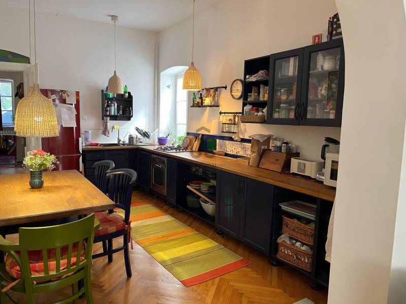 Pécs sétálóutcájában, történelmi belvárosban, felújított lakás, 75 m2, 1 emeleti, minden égtáj felé ablakkal, jól átszellőztethető, világos lakás.Helyiségek: nagy konyha (keleti és nyugati ablakokkal) és vele egy boltíven keresztül egybe nyíló, nagy nappali (déli ablakokkal), hálószoba (észak-keleti ablakkal a csendes, hársfás udvar felé), fürdőszoba (keleti ablakkal), külön wc, előtér (nyugati ablakokkal), előszoba (nyugati ablakokkal), a folyosó kerékpár tárolásra is alkalmas, a lépcsőházban a bérleményen kívül csak két további lakás van, kedves , csendes szomszédokkal.Autóval nem lehet parkolni az udvarban, de a költözés idejére be lehet hajtani, rövid időre meg lehet állni. Az épületben 0-24 órás kisbolt, fodrász is működik az utcafronton.Felszereltség:termosztátos gáz cirko fűtés, plusz hűtő-fűtő klímakonyha: gáztűzhely, villanysütű, mosogatógép, nagy hűtő nagy mélyhűtővel, kévéfőző gép, vízforraló, edények, e vőeszközök, poharak, csészék, bögrék, asztal, pad, székek, sok konyhaszekrény, 6 m hosszú munkapultnappali: hatalmas L alakú bőrkanapé, lábtartókkal, állítható háttámlákkal, dohányzó asztal, íróasztal székkel, TV, rengeteg beépített polc, üvegfüggöny műtárgyakhálószoba: franciaágy matraccal, igény szerintágyneművel és huzattal, éjjeli szekrény, nagy, 10 ajtós, beépített gardrób szekrényfürdőszoba: kád, mosdó alsó szekrénnyel, tükör polccal, mosógépJanuár 16.-tól költözhető!Kérdés esetén készséggel állok rendelkezésre!