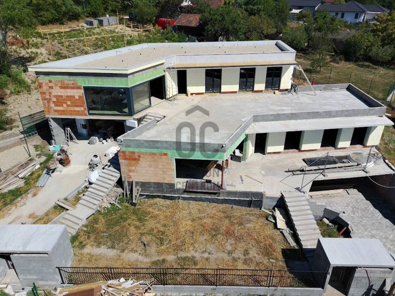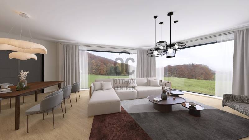 Érd-Parkváros csendes utcájában új építésű, nettó 187 m2-es, amerikai konyhás nappalival, 3 hálószobával, 2 fürdőszobával, kiszolgáló helyiségekkel, garázzsal, nagy terasszal ikerház eladó!Az épület formavilága rendkívül impozáns. Egyedi módon, szinteltolással kapcsolódik egymáshoz a két ház. Az ingatlant átgondolt, praktikus alaprajz, magas minőségű kivitelezés, modern, minden igényt kielégítő felszereltség jellemzi. Elhelyezkedése rendkívül csendes, zöld. Egy zsák utca végén, természetvédelmi terület szélén van, ami intimmé teszi. A hatalmas nyílászáróknak köszönhetően a ház világos, napos, szép kilátás van a környező erdős hegyekre. Az 57 m2-es terasz és a hozzákapcsolódó saját kertrész tökéletes helyet biztosít a kellemes pihenésre, kikapcsolódásra.A 2 épületnek csak a garázs szinten van közös fala. A házak 30 cm vastag Porotherm falazóelemekből épültek, 20 cm Dryvit rendszerű hőszigeteléssel.A fűtést Daikin hőszivattyús rendszer biztosítja, mennyezeti hűtés-fűtéssel és padlófűtéssel.A nyílászárók antracit színűek, fa, 3 rétegű, bukó-nyíló ablakok és nagy méretű toló teraszajtó, rejtett tokozással, elektromos redőnnyel, illetve zsalúziával. A burkolatok, szaniterek és belső ajtók kiemelkedő minőségben, az átlagnál magasabb áron választhatók. Az egyéb extra felszereltséget is tartalmazó részletes műszaki tartalmat komoly érdeklődés esetén rendelkezésére bocsájtjuk.A beruházó cég megbízható, és számos referencia munkával rendelkezik.Az utca rendezett, új építésű házakkal. Pár perc alatt elérhető minden szolgáltatás, iskola, óvoda, tömegközlekedés, bevásárlási lehetőség.Várható átadás: 2026. II. negyedévTovábbi információkkal kapcsolatban kérem hívjon bizalommal!