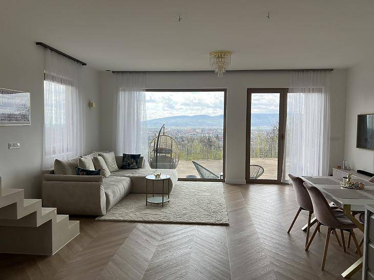 Vácon, Törökhegyen kínáljuk megvételre ezt a modern, örökpanorámás okosotthont, amely a kényelmet, az energiatakarékosságot és a prémium életérzést ötvözi. Az ingatlan minden fontos rendszere telefonról vezérelhető: a fűtés és hűtés, a világítás, a riasztó, valamint a beépített víztisztító és vízlágyító rendszer is, így a mindennapok maximális komforttal és biztonsággal telnek.Az alsó szinten egy előszoba, egy tágas, világos amerikai konyhás nappali kapott helyet, amely közvetlen kapcsolatban áll a lenyűgöző panorámát kínáló terasszal, továbbá egy hálószoba és egy fürdőszoba található itt. Az emeleti szinten három hálószoba, egy külön gardrób, egy fürdőszoba, külön WC, gépészeti helyiség és közlekedő biztosítja a család minden tagjának kényelmét. A délnyugati fekvésű ház egész nap napfényben úszik.A fűtésről korszerű hőszivattyús padlófűtés gondoskodik, a mennyezeti hűtés-fűtés pedig kellemes hőérzetet biztosít minden évszakban. Az ingatlan H tarifával, 3 fázisú árammal és elektromos autó töltési lehetőséggel is rendelkezik. Az udvarban szauna és jakuzzi teszi teljessé a pihenést és a kikapcsolódást. A buszmegálló mindössze 6 perc sétára található, így a kiváló lokáció a nyugalmat és a jó közlekedést egyszerre kínálja. Ez az otthon ideális választás mindazok számára, akik kompromisszumok nélkül keresnek modern, panorámás életteret Vácon.Kérdésével, illetve megtekintési szándékával keresse irodánkat. Amennyiben hitelre lenne szüksége új otthonának megvásárlásához, profi hitelközvetítő kollegáink díjmentesen állnak rendelkezésükre.Amennyiben eladásra lenne szükségük a vásárláshoz, irodánk egész Vác területén ingyenes értékbecslést vállal.
