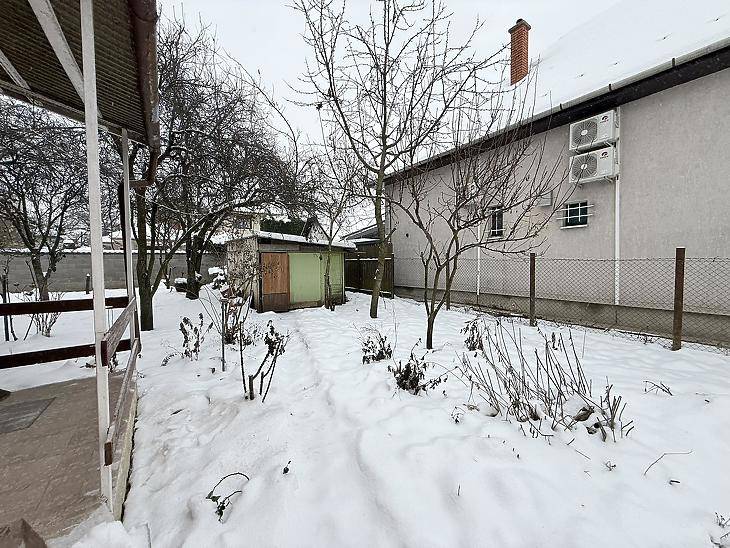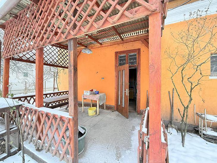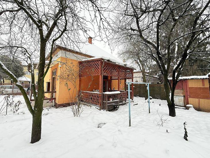 XVI. KERÜLETBEN, RÁKOSSZENMIHÁLY EGYIK CSENDES MELLÉKUTCÁJÁBAN KÍNÁLUNK MEGVÉTELRE EGY KÖRBEJÁRHATÓ 18,5 MÉTERES UTCAFRONTTAL RENDELKEZŐ, 57 NM ALAPTERÜLETŰ CSALÁDI HÁZAT, AMELY 497 NM-ES TELKEN HELYEZKEDIK EL. Az ingatlan az 1950-es években épült, tégla szerkezetű, fafödémes kivitelben, cserépfedésű tetővel. A homlokzaton 5 cm szigetelés található. A tetőszerkezet 2020-ban felújításon esett át, ekkor a cserépfedést, valamint a rossz állapotú gerendákat cserélték, így jelenleg jó műszaki állapotnak örvend.A ház elosztása praktikus és jól alakítható. A szobák faparkettával burkoltak, a többi helyiség járólapos. A fűtést elektromos hőtárolós kályha biztosítja, a meleg vizet villanybojler szolgáltatja. A nyílászárók fából vannak, dupla szárnyas kivitelben, az egyik szobában műanyagra cserélték a nyílászárót.A helyiségek között étkező, két szoba, konyha, fürdőszoba WC-vel, kamra padlásfeljáróval található, valamint a házhoz egy 10 nm-es, hátsó terasz is kapcsolódik, amely kellemes pihenőteret biztosít a kert felé. Az épület körbejárható, ami ritka adottság a környéken, és jelentősen növeli a használati komfortot.A telken könnyűszerkezetes garázs és egy megközelítőleg 20 nm-es tároló is helyet kapott, továbbá egy gyűrűs kút, amely kiválóan alkalmas kertlocsolásra. Parkolás a garázsban vagy a telken belül is megoldható.A telek adottságait tekintve: 18,5 méteres utcafronttal rendelkezik. LKE-1/XVI/O1 es övezetbe tartozik. Így 25%-a beépíthető, 5 méter épületmagasságig.A környék csendes, kertvárosias jellegű, ugyanakkor kiváló tömegközlekedéssel rendelkezik. Pár perc sétára elérhetők a 144-es, 174-es, 244-es és a 931-es buszjáratok, valamint bevásárlási lehetőségek is a közelben találhatók.Az ingatlan akár azonnal is birtokba vehető. Elsősorban készpénzes vásárlók részére alkalmas.Irányára: 79,9 MA hirdetésben szereplő adatok tájékoztató jellegűek.