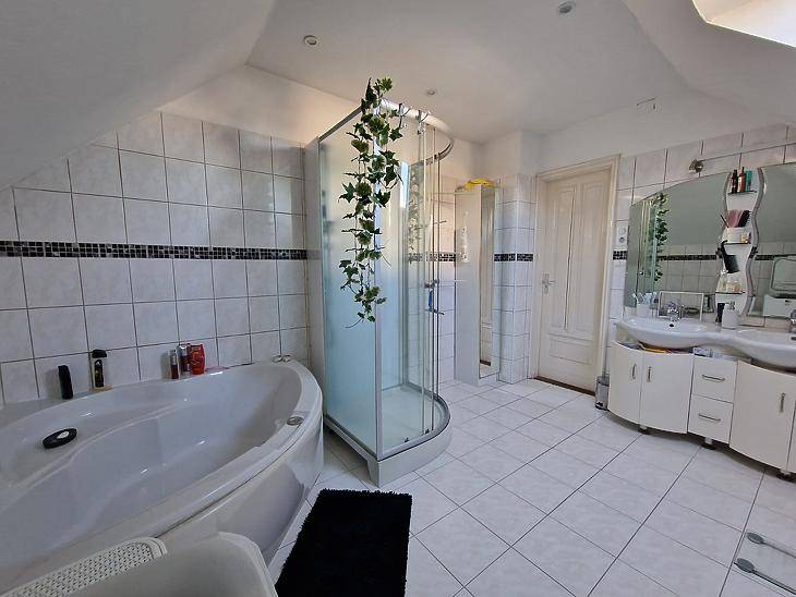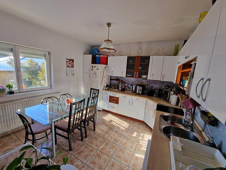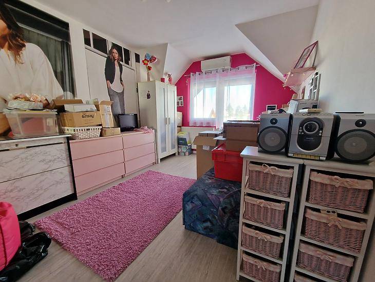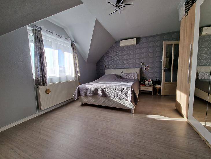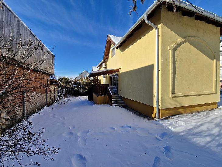 Dunakeszi Révdűlőben eladó egy jó adottságú, 2005-ben épült ikerházfél.Az ingatlan 172 nm összterületű, ebből 139 nm lakótér. A kialakítás kifejezetten jól használható: négy hálószoba, amerikai konyhás nappali, gardrób, két fürdőszoba + külön WC biztosít elegendő teret akár nagyobb családnak vagy több generációnak is.A fűtésről és meleg vízről karbantartott gázkazán gondoskodik. Az elmúlt években az ingatlan több ponton felújításon esett át:automata redőnyök, klíma, padlóburkolatok cseréje.A házhoz emeleti erkély, hátsó terasz, beépített utcafronti terasz, valamint garázs tartozik. A ház előtt viacolorral burkolt parkoló van kialakítva, amely két autó számára kényelmes megoldást nyújt.A 200 nm-es kert jól tagolt, élhető méretű, nem fenntartásigényes, mégis elég nagy gyerekeknek, grillezéshez vagy kertészkedéshez. A kert öntözéséről fúrt kút gondoskodik.Csendes, családi házas környezet, jó megközelíthetőség:buszmegálló ~8 perc, Duna-part ~5 perc, az ingatlan nem árterületen fekszik.