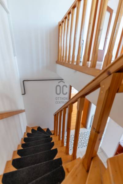 Csendes újépítésű lakókörnyezetben helyezkedik el a képeken látható 83 négyzetméter alapterülettel rendelkező lakóingatlan.A épülethez közvetlenül kapcsolódik egy 17 négyzetméter alapterületű garázs. Az ingatlan egy három lakást magába foglaló épületegyüttes utolsó lakóegysége. A 2007-ben épült lakóingatlan tégla falazattal, beton cserépfedéssel rendelkezik.A kétszintes lakótér által lehetővé vált a szeparált funkciók kialakítása. A földszinten a családi élet központjaként helyet kapott a nappali-konyha-étkező.A felső szinten elhelyezett három kényelmes mérettel rendelkező hálószoba pedig biztosítja az elkülönülést egy kifejezetten tágas méretű fürdőszobával. A lakás a kedvező délnyugati tájolásnak köszönhetően világos, napfényben gazdag terekkel rendelkezik, amely tágas térérzést eredményez.Az ingatlan fűtését egy újonnan üzembehelyezett gázcirkó kazán biztosítja lapradiátoros hőleadással.Az ingatlanhoz 300 négyzetméter alapterületű kizárólagos használatú telekrész tartozik. A környék kifejezetten csendes. A telek hátsó részéhez kapcsolódó terület nem került beépítésre, amely által biztosított a lakók zavartalan nyugalma.A helyi autóbuszjárat megállóhelye két perc sétatávolságra található az ingatlantól.Bővebb információért várom jelentkezését!Amennyiben hitelre van szüksége, az Otthon Centrum az ország egyik legnagyobb és legmegbízhatóbb hitelközvetítőjeként, teljes körű és díjmentes hitel ügyintézéssel áll ügyfelei rendelkezésére.Kérje személyre szabott ajánlatunkat!