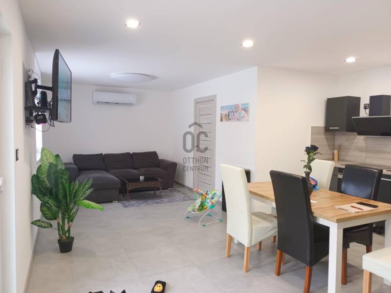 Zalaszentgrót belvárosában kínálom megvételre ezt a három külön lakrésszel rendelkező családi házat. Igazán ritka az ilyen ajánlat, akár három család együttélésére is alkalmas lehet a meghirdetett ingatlan. A ház teljes-körűen felújított/újjáépített és bővített, összesen 140 nm hasznos alapterülettel rendelkezik. Az első lakrész nettó 72 nm-es, helyiségei: 2 különnyíló szoba, nappali/konyha/étkező, fürdőszoba-Wc.A második lakrész nettó 34 nm-es, helyiségei: szoba/konyha, fürdőszoba-Wc, mosókonyha-Wc.A harmadik lakrész nettó 34 nm-es, helyiségei: szoba, konyha/étkező, fürdőszoba-Wc.Az épületben teljesen új villamosenergia-, vízvezeték-, és szennyvízhálózat került kiépítésre, korszerű, hőszigetelt műanyag nyílászárók lettek beépítve. A tetőszerkezet is teljesen megújult. A falak utólagos talajnedvesség-elleni szigetelést kaptak (injektálás), födém- illetve külső falszigetelés is történt.Az otthon melegét jelenleg hűtő-fűtő klímák és elektromos panelek biztosítják, de a gázcsonk is telken belül található.A szobákba jó minőségű laminált padlóburkolat került (több réteg alátét-szigeteléssel), a többi helyiségben szintén nagyon jó minőségű járólap van. A házba minőségi anyagok kerültek beépítésre, precíz kivitelezéssel.Az udvar egy része térkőburkolatot kapott, találunk még itt egy 20 nm-es garázst (villany itt is kiépítve), a kertben több, termő gyümölcsfát (meggy, szilva, őszibarack, sárgabarack, alma), illetve az öntözéshez/locsoláshoz bővízű ásott kút is fellelhető! Az ingatlan a belvárosban található, pár perc sétával elérhető több élelmiszerüzlet, orvosi rendelő, gyógyszertár, iskola, óvoda, hivatalok, éttermek, stb.Zalaszentgrót a Zalai-dombságban, a Zala folyó völgyében elhelyezkedő, kb. 6 200 főt számláló kisváros. Rendelkezik többek között komplex szolgáltatást nyújtó Egészségügyi Központtal, az óvodától a középiskolai képzésig iskolarendszerrel, zeneiskolával, termálfürdővel, Járási Hivatallal, Rendőrőrssel, Polgárőrséggel. Központi fekvésének köszönhetően gyorsan elérhető Zalaegerszeg (32 km), Keszthely és a Balaton (28 km), Hévíz (26 km), Sümeg (21 km), Kehidakustány (13 km).A települést szőlőhegyek és erdők veszik körül.Amennyiben az ingatlan elnyerte a tetszését, hívjon bizalommal és megtekintésre időpontot egyeztetünk!Szolgáltatásaink körében szakszerű tanácsadással, bank-semleges hitel-ügyintézéssel és kedvező díjszabású ügyvéddel nyújtunk segítséget!