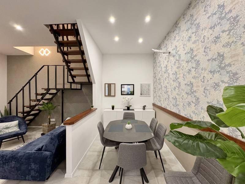Első lakóját várja: PRÉMIUM, FELÚJÍTOTT 3 szobás 82m2-es siófoki sorház.1. INGATLAN HELYSZÍNE, LOKÁCIÓSiófokon a belváros szívében a Kálmán Imre sétányról nyíló kis utcában található.A Sió Plaza 1 perc távolságra, a híres Petőfi sétány és a Plázs 8-10 perces gyalogosan.Délkeleti tájolásának köszönhetően a reggeli–délelőtti fények beragyogják az otthont.Udvarra néző elhelyezkedése kellemesen intim, zajtól védett.Állandó otthonnak, nyaralónak vagy befektetésnek egyaránt kiváló választás.A mindennapi szolgáltatások, üzletek és közlekedési csomópontok gyalogosan is könnyen elérhetők.2. ÉPÜLET JELLEMZŐI KÍVÜLRŐL1980-ban épült sorházi egység, teljes körűen és igényesen felújítva 2025 novemberében készült el.10 cm homlokzati szigetelés gondoskodik a korszerű energetikáról.Két szint, gondozott homlokzat és rendezett közös terek jellemzik.A házhoz közös telekrész tartozik.9 nm-es fedett terasz bővíti a lakóteret, mellette zárt tároló áll rendelkezésre.Közös használatú pince és kert biztosít extra lehetőségeket.Parkolás közterületen, a közelben megoldható.3. AZ INGATLAN JELLEMZŐI BELÜLRŐL82 nm-es, kétszintes, 3 szobás elrendezés, teljesen felújítva – sosem használt állapot.Földszinten padlófűtés, emeleten radiátoros hőleadás mindez Ariston gázcirkóval.A konyhában Ariston vízmelegítő gondoskodik azonnali melegvízről, a földszi fürdőszobában külön bojlerrel kiegészítve.Beépített Whirlpool gépek: sütő, mikró, mosógép, mosogatógép és beépített hűtő.Paradox riasztórendszer emeli a biztonságot.Udvarra néző ablakok és a 9 nm-es fedett terasz kellemes, intim hangulatot adnak.A felújítás óta nem lakott, Ön lehet az első lakó.4. A KÖRNYÉK JELLEMZŐIA belvárosi elhelyezkedés miatt boltok, éttermek, bankok, gyógyszertárak és piac a közelben találhatók.A Balaton-part, a kikötő és a sétány könnyen megközelíthető.Iskola, óvoda és egészségügyi szolgáltatások elérhetők a környéken, családbarát környezet.Kiváló a közlekedés: vasútállomás és buszpályaudvar a közelben, gyors országos kapcsolatokkal.A környék rendezett, biztonságos és egész évben élhető, idényben pezsgő nyaralóhangulattal.
