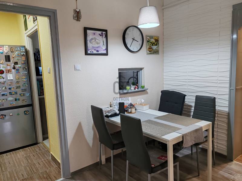 Siófok kedvelt, belvároshoz közeli részén kínálunk megvételre egy otthonos, világos, 4. emeleti téglalakást, egy teljes körűen szigetelt társasházban (homlokzat és tető is megújult).A lakás műanyag nyílászárókkal rendelkezik, redőnnyel és szúnyoghálóval felszerelve, így a komfort és az energiatakarékosság is biztosított.Az elrendezése kiváló:tágas, világos nappali erkéllyel,az étkező rész ízlésesen elválasztva fa panelekkel,külön nyíló, világos hálószoba,előszoba, felszerelt konyha, kamra,kádas fürdőszoba, valamint külön WC.A lakás fűtése konvektoros gázfűtés, mely rendkívül kedvező költségű:télen kb. 30.000 Ft/hó 25 °C-on fűtve, nyáron gyakorlatilag nincs fűtési költség.A nyári kellemes hőmérsékletről klíma gondoskodik, a meleg vizet pedig új, lapos villanybojler biztosítja.A közös költség mindössze 8.000 Ft, a parkolás ingyenes a ház előtt.A lakáshoz közös pincetároló is tartozik.A lépcsőház és a kert gondozott, karbantartott, csendes, jó lakóközösséggel.Kiváló elhelyezkedés:Tesco Express és más élelmiszerbolt a szomszédbanbuszmegálló 100 mVíztorony 500 mBalaton 1 kmEz a lakás ideális választás állandó otthonnak, nyaralónak vagy befektetésnek is.???? Ne maradjon le róla – hívjon bizalommal, és nézze meg személyesen!