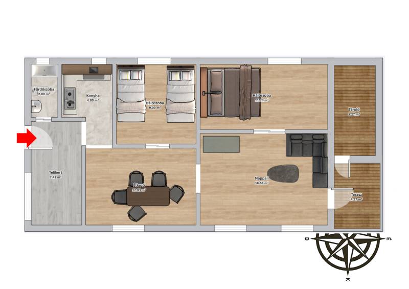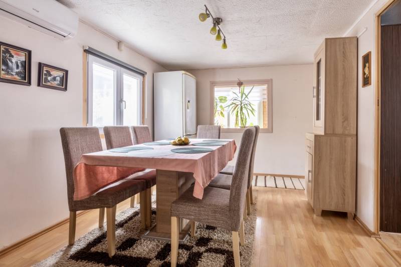 Dömsödön a Dunától egy utcányira keresi új tulajdonosát egy állandó lakhatásra alkalmas, szigetelt, 62 nm lakóterületű + 9 nm-es beépített terasszal rendelkező, könnyűszerkezetes ház, 411 nm-es telekkel!KÖRNYÉK ÉS KÖZLEKEDÉS:- Dömsöd, Pest vármegyei, családias hangulatú település, Budapesttől alig egy órára.- Rendezett, jól ellátott község városias infrastruktúrával.– A ház Dömsöd belterületi részén helyezkedik el, természetközeli környezetben a Ráckevei‐Duna mentén.– A község biztos közúti kapcsolatban van az 51-es főúttal, amely a Duna mentén futó egyik legfontosabb regionális közlekedési tengely.– A főút átvezet Dömsöd mellett, így nem terheli a belső lakóövezeteket, de könnyen megközelíthető bármelyik településrész.- Közösségi közlekedéssel (vonattal és busszal is) elérhető, de autóval a legkényelmesebb, a Népligetbe közlekedő buszjárat megállója kb. 1,5 km.A HÁZRÓL:– 1982-ben épült, könnyűszerkezetes, Ádám típusú faház.– Az ingatlant 2020-ban felújították.– A házat szigetelték, a nyílászárókat műanyagra cserélték.– Elosztása: beépített terasz hatalmas ablakokkal, konyha, tágas étkező, fürdőszoba+WC, nappali, két külön nyíló szoba, hátsó terasz és beépített tároló.– A megfelelő hőmérsékletről két hűtő-fűtő klíma gondoskodik, melyek használatával egész évben lakható a ház.– Az éves áramszámla a téli fűtéssel együtt 150.000 forintból (12 500 Ft/ hó) megoldható.– Víz, villany, csatorna bevezetve, gáz az utcában.– Az ingatlan tehermentes, igény esetén gyorsan birtokba vehető.A TELEK ADOTTSÁGAI:– Téglalap alakú, 411 m2-es gondozott síktelek.– Egy gépkocsi részére fedett beálló lett kialakítva a telken belül.Önnek akkor ajánlom ezt az ingatlant, ha zöld környezetben, csendes helyen, nyugodt otthonra vágyik és fontosnak tartja az alacsony fenntartási költségeket.AZ INGATLAN MEGTEKINTHETŐ:– személyesen,– online személyes bejelentkezéssel.FINANSZÍROZÁSI KÉRDÉSEKBEN ONLINE ÜGYINTÉZÉSSEL IS SEGÍTÜNK:– Bank-független hitelcenterünk díjmentesen versenyezteti minden bank és hitelintézet ajánlatát.– Önnek nincs más dolga, mint beszélgetni munkatársunkkal, majd a megversenyeztetett ajánlatokból kiválasztani a hosszútávon is a legmegfelelőbb konstrukciót.– Szakértőink 20 éves szakmai tapasztalattal és egyedi igényekre szabott, fogyasztóbarát lakáshitelekkel, babaváró hitellel, teljes körű CSOK PLUSZ és OTTHON START program ügyintézéssel várják Önt.Várom hívását a hét bármely napján!