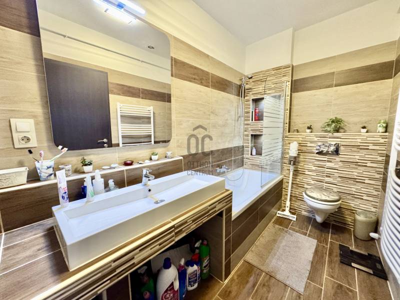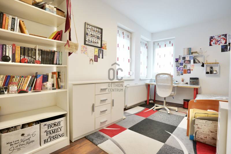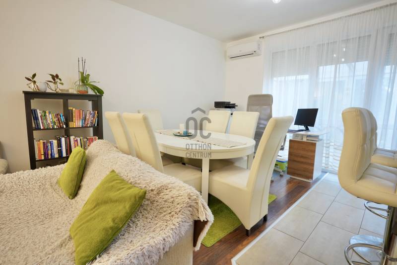 Eladó sorba került egy 110 m²-es ikerházfél Dunakeszi Alsó egyik csendes utcájában, 6 perc sétára a vasútállomástól és buszmegállótól.A Szabadságliget egyik legkedveltebb, csendes, átmenő forgalomtól mentes utcájában helyezkedik el ez a modern, 90 m²-es téglaépítésű ikerházfél, amelyhez egy 13,5 m²-es fűthető télikert, valamint a kertben egy különálló, összkomfortos, 20 m²-es könnyűszerkezetes apartmanház is tartozik.A FŐÉPŰET:A ház 2015-ben épült, 10 cm-es külső hőszigeteléssel, cseréptetővel, műanyag nyílászárókkal, minőségi burkolatokkal, mozgás- és nyitásérzékelő riasztórendszerrel. A melegvízről és a fűtésről Ariston kombi cirkó kazán, a hűtésről és rásegítő fűtésről Gree hűtő-fűtő klíma gondoskodik. A radiátoros és padlófűtés kombinációja kellemes, energiatakarékos hőérzetet biztosít, minden helyiségben redőny van, az ablakokon pedig szúnyogháló. A MELLÉKÉPÜLET:A kert hátsó részén található egy könnyűszerkezetes, hőszigetelt és teljesen önálló 20 nm-es vendégház, amely:- saját szobával,- külön konyhával,- zuhanyzós, beépített WC-vel felszerelt fürdővel,- valamint elektromos padlófűtéssel és klíma előkészítéssel rendelkezik.A melegvizet itt is Ariston, víztartályos villanybojler biztosítja, így az épület teljesen független a főépület rendszereitől. A vendégházhoz tartozik egy 17 m²-es fedett terasz, valamint egy füvesített, sziklakertes pihenő- és sütögető rész is.RENDEZETT, GONDOZOTT KERT:- automata öntözőrendszer- kerti csap- térkövezett, napelemes megvilágított közlekedőfelületek- 3 autó számára fedett beálló közvetlenül a ház mellett- szépen karbantartott gyep, dísznövényekkel beültetett magaságyás, sziklakert és 10-15 éves, magas tujákKIVÁLÓ KÖZLEKEDÉS:- vonattal 18 perc alatt elérhető a Nyugati pályaudvar,- busszal 3 perc Újpest–Káposztásmegyer,- autóval néhány perc alatt elérhető az M2-es, M3-as és az M0-s autópálya.Iá.: 169,5 M Ft.