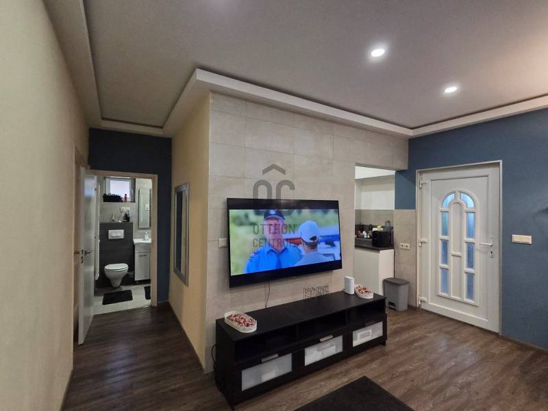 Újhartyán csendes utcájában, mégis központi helyen vált eladóvá ez a szépen felújított ingatlan. Az eredeti kádár kocka néhány éve teljesen megújult.Új nyílászárókat kapott, melyek szúnyoghálóval és redőnnyel ellátottak ( ezek egy része elektromos ) Teljes belső átépítéssel, beépített gépekkel kialakított modern konyha készült.A tágas nappali mellett 2 külön nyíló hálószoba is van.A kert mérete bőven elbírja, hogy a hátsó felében 32 db napelem lett felállítva ezzel a rezsi költséget jóformán nullára redukálva .A fűtésről- hűtésről modern klímák gondoskodnak, míg a teljes vízbekötés vízlágyítórendszert kapott.A ház téglából és szilikátból épült, kívülről szigetelt és új a tetőszerkezet is. Az ingatlan kamerarendszerrel ellátott.A kertben van egy medence illetve egy állandóan használható jacuzzi is.A tulajdonos az autó kényeméről sem feledkezett meg, a 30 m2-es garázst Hörmann garázskapu nyitja.Az M5 autópálya csak néhány percre található, ahonnan Budapest 20-25 perc alatt elérhető