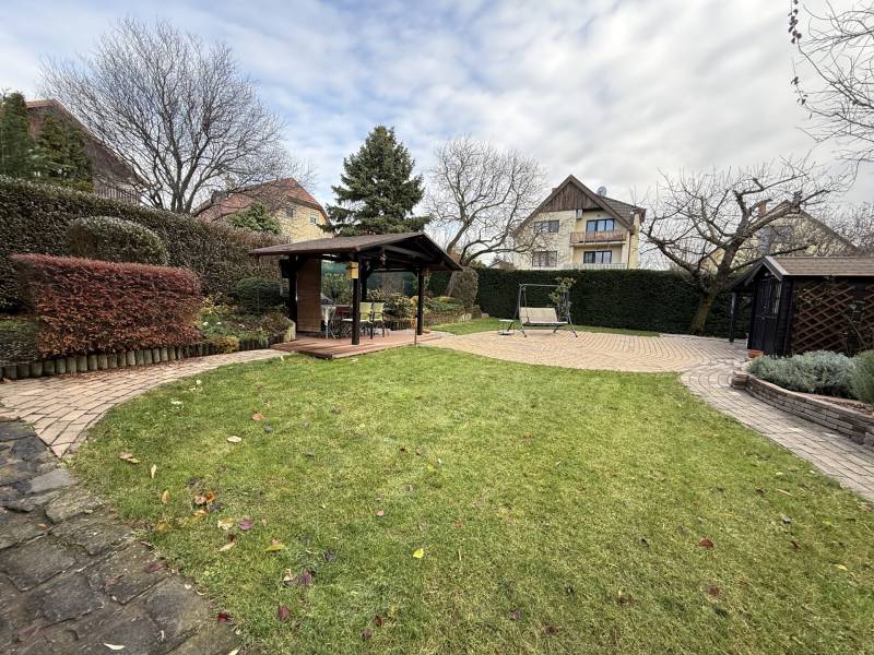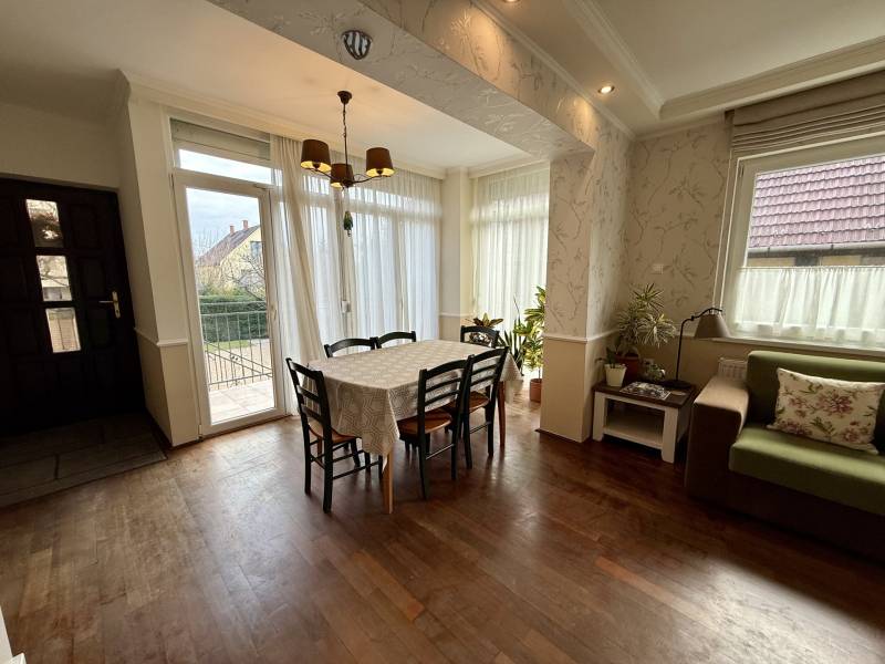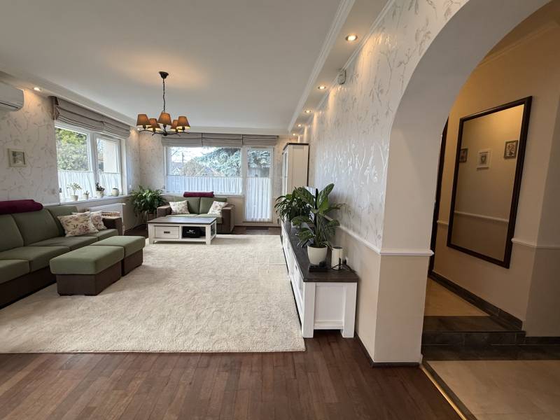 Különleges lehetőség, egy igazán otthonos ház várja Önt Budaörs csendes, kertvárosi részén.Az utcán sétálva nem is gondolná a kedves érdeklődő micsoda kincset rejt a kerítés. Az alsó szintjén található egy közvetlen kertkapcsolatos, nappali és egy hálószobás kialakítású lakás tágas étkezővel, konyhával, fürdőszobával és egy tároló helyiséggel. Külső lépcsőn jutunk fel a felső, belső kétszintes, átgondolt kialakítású, teraszos lakrészbe. Itt egy nagy ablakos étkezőbe érkezünk, a hatalmas nappali mindig fényárban úszik. A konyha a lakás sarkában található, kamrával, kicsit szeparáltan a többi helyiségtől, így mind az amerikai konyha, mind a zárt konyha előnyét élvezheti a tulajdonosa. Ezen a szinten még egy fürdőszoba és egy dolgozószoba található. Belső lépcsőn jutunk fel a felső szintre, ahol 3 hálószoba, egy fürdőszoba lett kialakítva. Erkélyek, teraszok minden szinten kapcsolódnak szobákhoz.Ez a kitűnő állapotú, szuper beosztású, hangulatos, kétgenerációs családiház sok lehetőséget rejt. A házban összesen hét szoba található, így bőséges hely áll rendelkezésre a család minden tagja számára, legyen szó akár gyerekszobákról, dolgozószobáról vagy vendégszobáról. A három fürdőszoba pedig garantálja, hogy a reggeli rohanás során senkinek ne kelljen várakoznia. A gázfűtés és a klímaberendezés biztosítja a megfelelő hőmérsékletet egész évben. A ház kertje varázslatos, intim, praktikus terekkel, szaletlivel, tárolóval, mely tökéletes helyszínt nyújt a szabadidős tevékenységekhez, családi összejövetelekhez. A házhoz elektromos autó töltési lehetőség is tartozik, amely a modern kor igényeit szolgálja ki. Ez a kétgenerációs ház tökéletes választás összeköltözőknek, önállósodóknak, otthon dolgozóknak, vállalkozóknak egyaránt.Méretét tekintve pont jó azt gondolom mindenkinek, nem hatalmas, mégis tágas, a kertje sem óriás, de remekül elfér benne minden (akár egy medence is ), ideális annak, aki Budapesthez közel, zöld övezetben, csendes környezetben képzeli el új otthonát! Budaörs nemcsak a zöld környezetéről, hanem kitűnő közlekedési lehetőségeiről is híres. Az ingatlan könnyen megközelíthető autóval, a közeli főutaknak köszönhetően, de a tömegközlekedés is jól kiépített, így a főváros gyorsan elérhető. A csendes környék biztonságos, ideális helyszín a gyerekek számára, ahol szabadon játszhatnak, felfedezhetik a természetet. A környék számos előnnyel rendelkezik, hiszen a közelben található iskolák, óvodák és bevásárlási lehetőségek is, így mindennapi szükségletei könnyen kielégíthetők. A zöld területek, parkok és játszóterek pedig remek lehetőséget biztosítanak a szabadidő eltöltésére, legyen szó akár sétáról, kerékpározásról vagy piknikezésről.