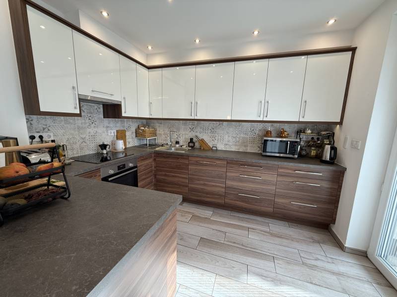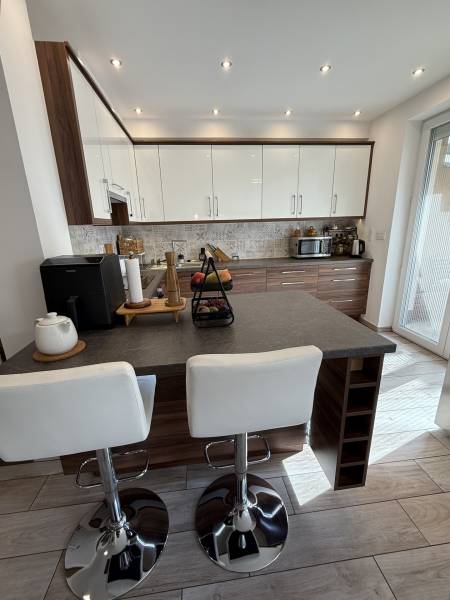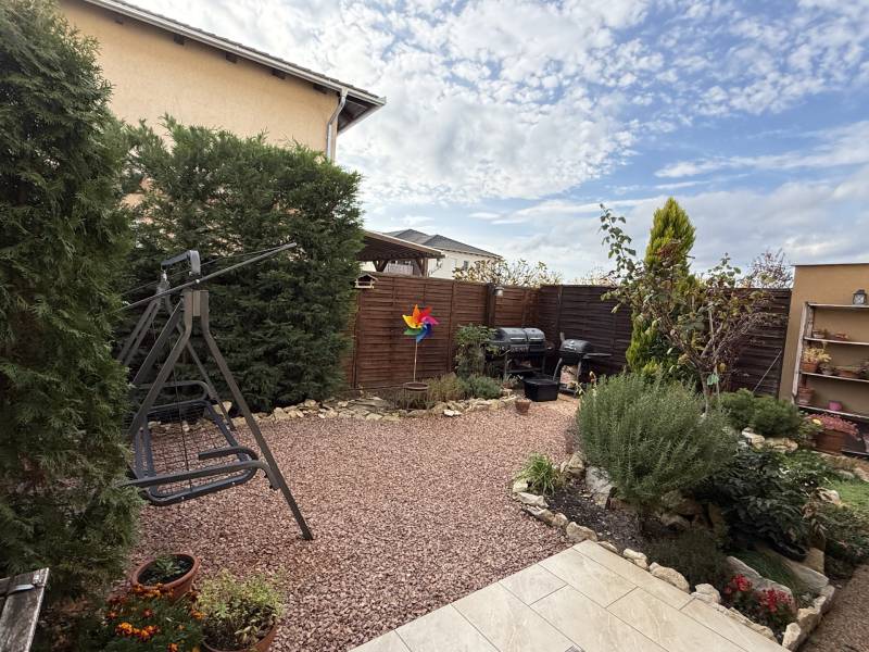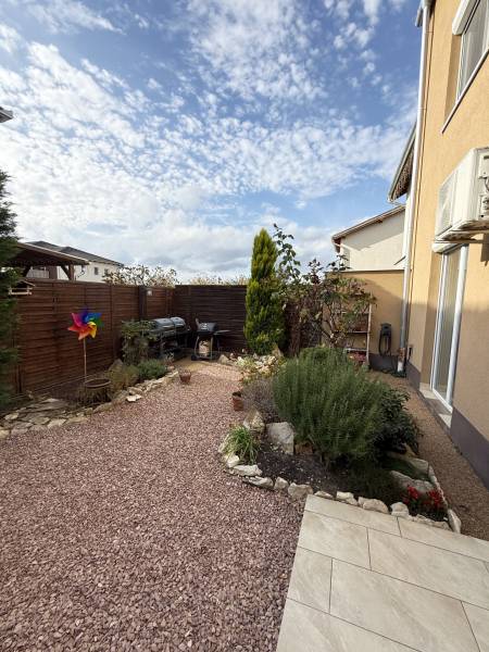 Dunaharaszti csendes, fiatalos kertvárosi részén, a Bezerédi -lakóparkban található ez a kiváló állapotú modern sorházi lakás, amely ideális választás kisebb és nagyobb család számára egyaránt. Az ingatlan alapterülete 142 nm, beosztása nagyon praktikus. Három szintes, benne a nappalin kívül 4 szoba lett kialakítva, lehetőséget adva a családi, baráti együttlétekre és a pihenésre. A földszinten egy gyönyörű, elegáns, tágas konyha, fényárban úszó amerikai konyhás nappali- étkező együttese fogad minket, nagyon helyes kis terasszal, kerttel, grillezővel, igazi vendégmarasztaló hangulattal, valamint az előszobából külön nyíló fürdőszoba WC-vel. Szintén az előszobából nyílik egy ajtó a garázsba, így az autóból kiszállva közvetlenül be tudunk jönni a lakásba, míg egy másik autóval a garázs elé, az előkertbe is beállhatunk. Az alsó szint melegsége, a konyhában lévő sok kis spotlámpa, a LED lámpák, a fények játéka minden napszakban különleges hangulatot varázsolnak. A világos, barátságos és egymástól mégis szeparált hálószobák az emeleten kaptak helyet, a teljes nyugalmat biztosítva. A szülői háló erkély kapcsolatos. Ezen a szinten egy fürdőszoba és egy külön WC is ki lett alakítva. A legfelső szint, a tetőtér szintén be lett építve, itt egy hatalmas szoba, egy gardrób található, mely ideális lehet akár dolgozó, vendég, vagy hobbiszobának , ha esetleg nincs szükség ennyi hálószobára. Két fürdőszoba, összesen három WC biztosítja, hogy a reggeli rohanás során sem kell várakoznia a lakóknak, mindenki számára elegendő az élettér.A ház fűtése a téli hónapokban gázcirkóval megoldott, az alsó szinten padlófűtés, a felső két szinten radiátorok vannak, míg a nyári melegben 2 klíma nyújt felfrissülést. A házba vízlágyító is beszerelésre került, a nyílászárók redőnnyel, szúnyoghálóval felszereltek. A rendezett kis kertjében fűnyírással nem kell bajlódni, de a a sziklakert, a virágágyások mégis tökéletes kikapcsolódást biztosítanak. Az apró, minden évszakban valami szépséget rejtő díszkertben fűszernövények, virágok egyaránt helyet kaptak. A társasház a pár éve átadott Bezerédi Sportpark szomszédságában található, mely Dunaharaszti legnagyobb épített szabadtéri közösségi tere, ahol rengeteg lehetőség várja a sportolni, kikapcsolódni vágyó felnőtteket és gyerekeket . Itt szinte minden megtalálható, egy modern, zárt játszótér, ping-pong asztalok, röplabda/lábtenisz/tollaslabda pálya, streetball pálya, kispályás foci-és kézilabda pálya, közösségi terekkel, padokkal, mosdókkal.Kiváló elhelyezkedésének köszönhetően a környék ellátottsága is kiemelkedő, hiszen a közeli boltok, Lidl, ALDI, Tesco, óvodák, bölcsödék, játszóterek mindössze pár percnyi sétára találhatóak. A Dunaharaszti közlekedési lehetőségei is kedvezőek, Budapest központja gyorsan és egyszerűen megközelíthető autóval, busszal, de a vasúti közlekedés fejlesztése is folyamatban van. A környék biztonságos és csendes, ideális választás gyermekes családok számára, akik értékelik a nyugodt, zöldövezeti környezetet. Amennyiben felkeltette érdeklődését ez a kivételes ingatlan, ne habozzon kapcsolatba lépni velem!