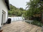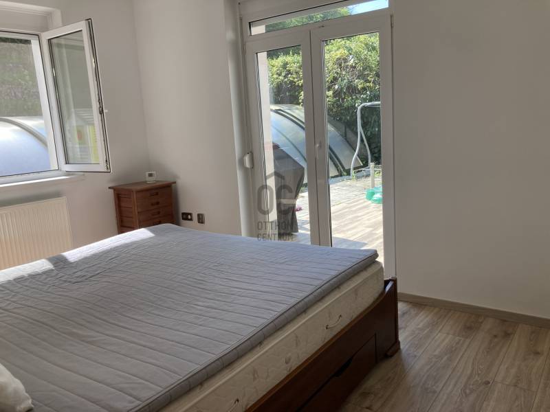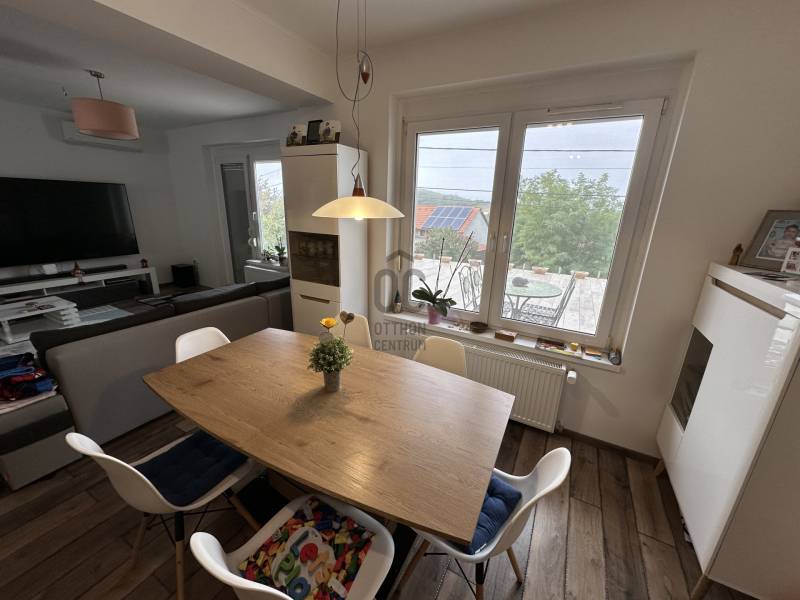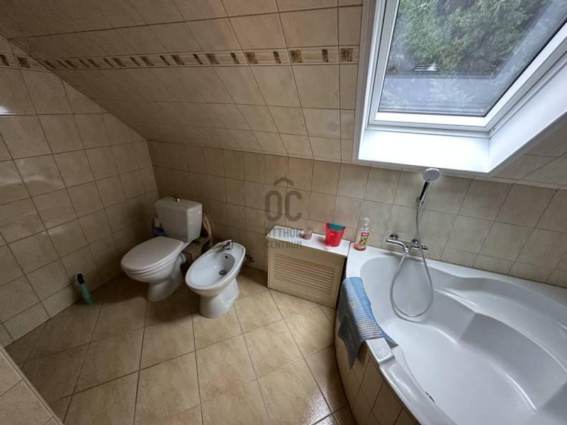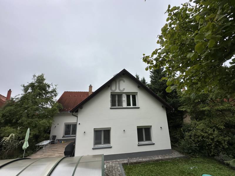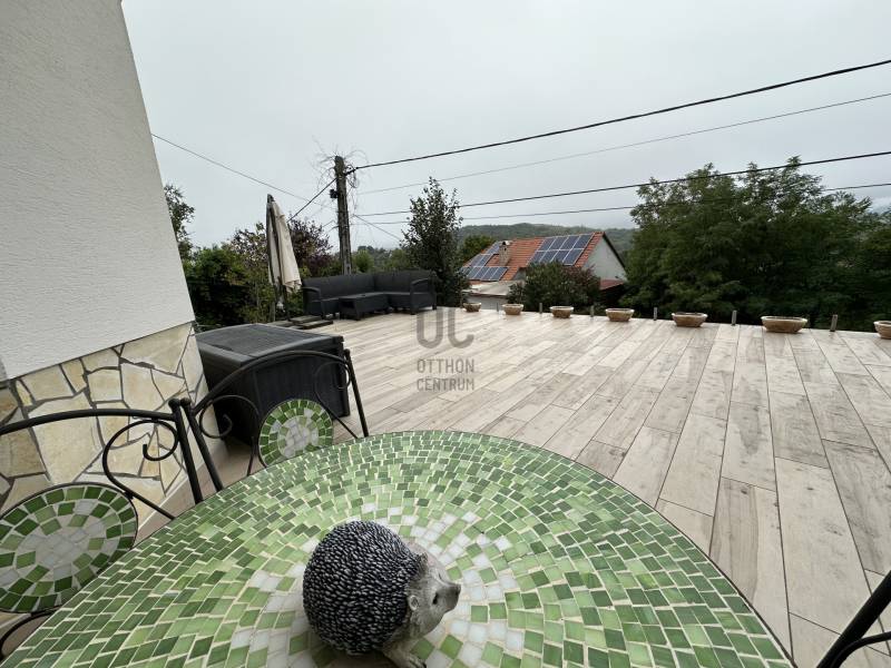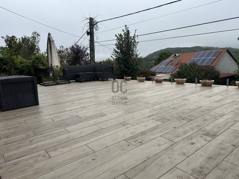 Pilisjászfalun, az erdő szélén, gyönyörű panorámával rendelkező 383 nm-s, igényes családi ház eladó. -A ház gázkazánnal fűthető. - A gázkazánt korszerűbbre cserélték, \" okos fűtés\" megoldással.- Vegyes tüzelésű kazán, kandalló előkészítése a házban kialakítva. - Az elmúlt években új szigetelést és színezést kapott a ház.- A tetőablakok, a tető alatti fóliák, a tetőszigetelés is kicserélve.- 3 db hűtő-fűtő klíma lett beszerelve a családi házba.- Riasztó berendezés- Konyhabútor, műszaki berendezések néhány évesek. - A ház központi része a középső szint, melyben igényesen kialakított konyha-nappali rész található, a kert több részére is a kijutás megoldott, akár a medencés kertrészre , akár a panorámás teraszra . - A ház utcai szintjén garázs, mosókonyha, wellness rész lett kialakítva, melyben szauna, infraszauna, zuhanykabin található.- A garázsban két, esetleg három autó beállására is lehetőség van.- A kertben medence lett kialakítva, melynek felújítása az új tulajdonosokra vár.- A harmadik tetőtéri szinten a nagy méretű hálószoba, plusz két szoba , gardróbszoba került kialakításra - Szintenként fürdőszoba, dupla nappali.- Lépcsőházból nyílik a két szint, így remek lehetőség több generáció összeköltözésére, illetve befektetési lehetőség, akár egy szint kiadásra is.Olyan érdeklődőknek ajánlom, akik kevés szabadidővel rendelkeznek, viszont medencés kertes házban szeretnének nyugodtan kikapcsolódni.